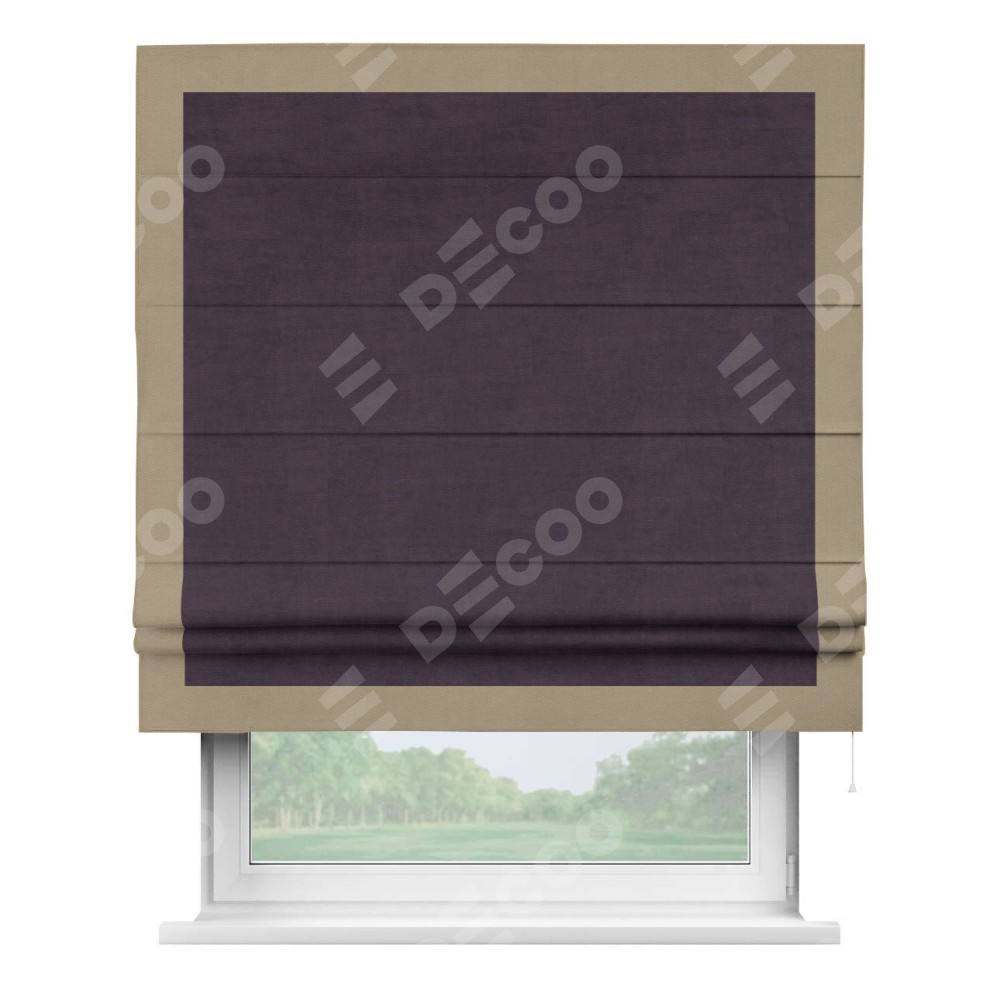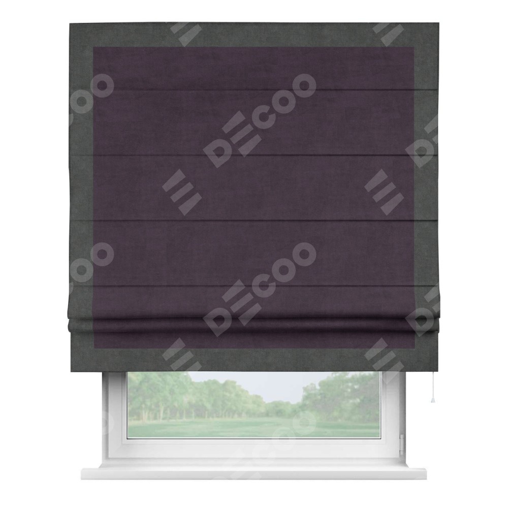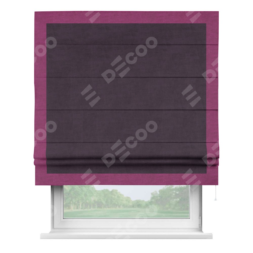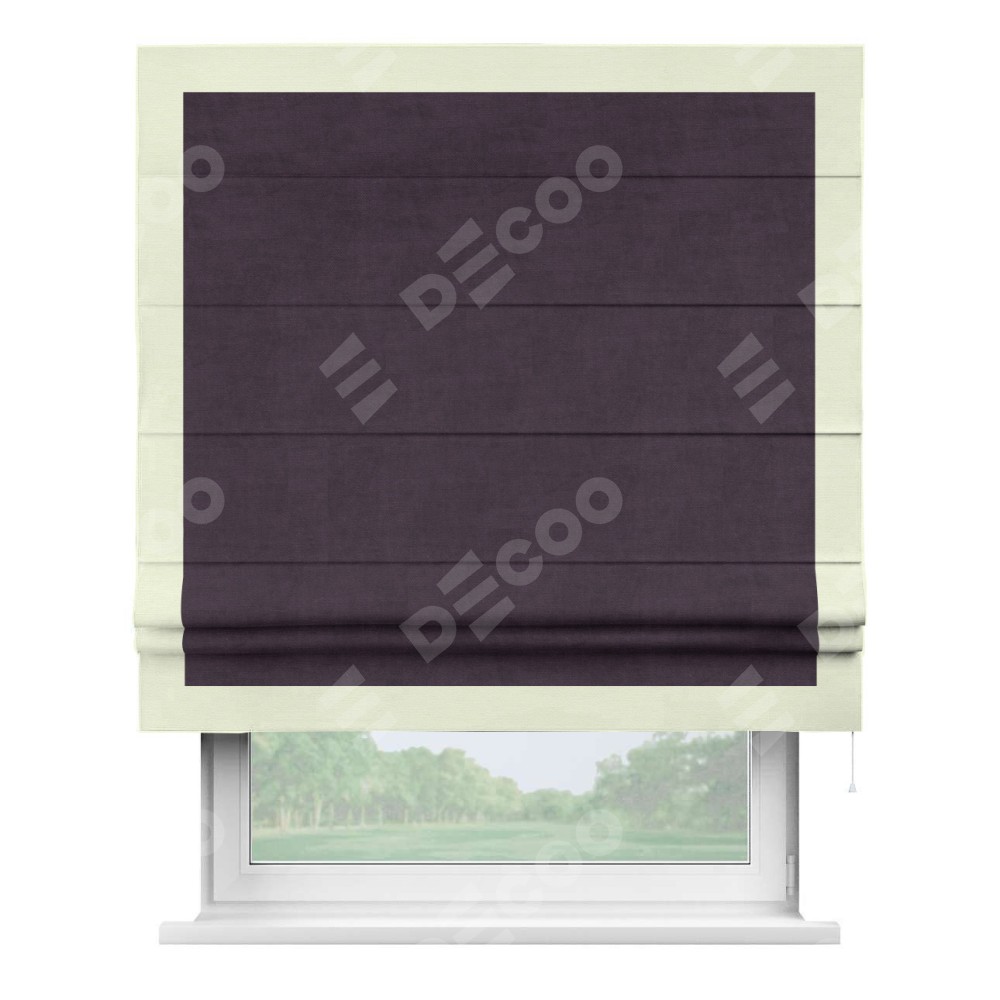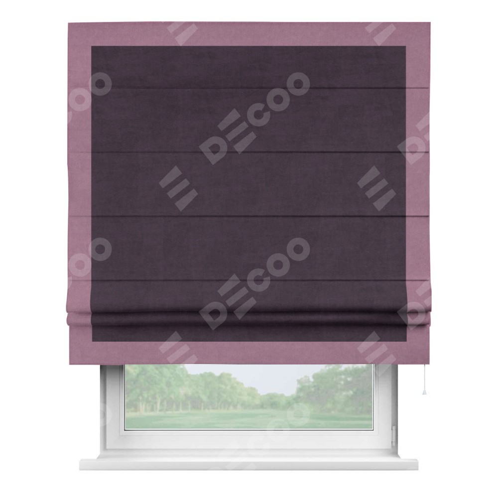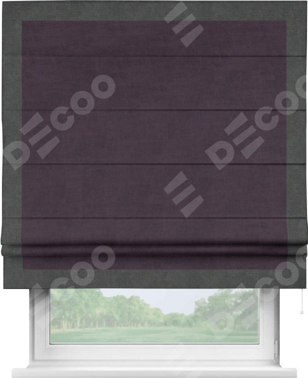 Римская штора «Кортин» для проема, вельвет тёмно-фиолетовый с кантом Чесс