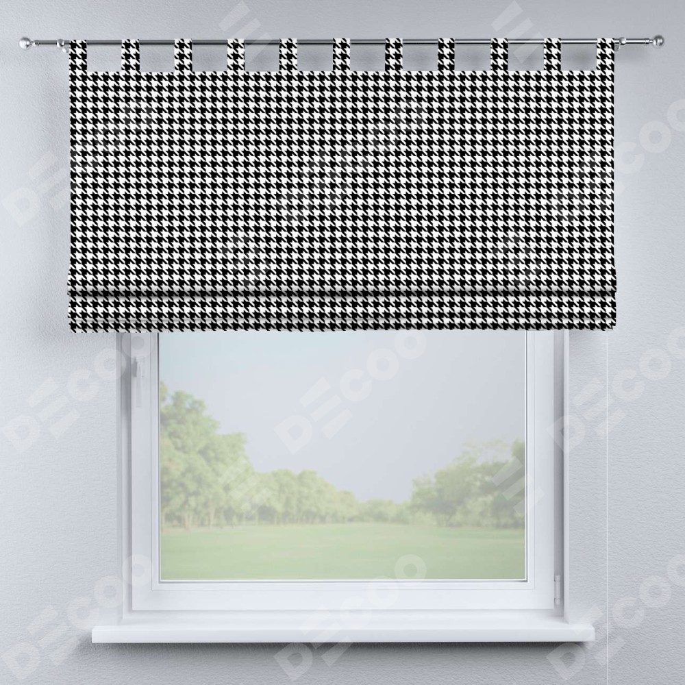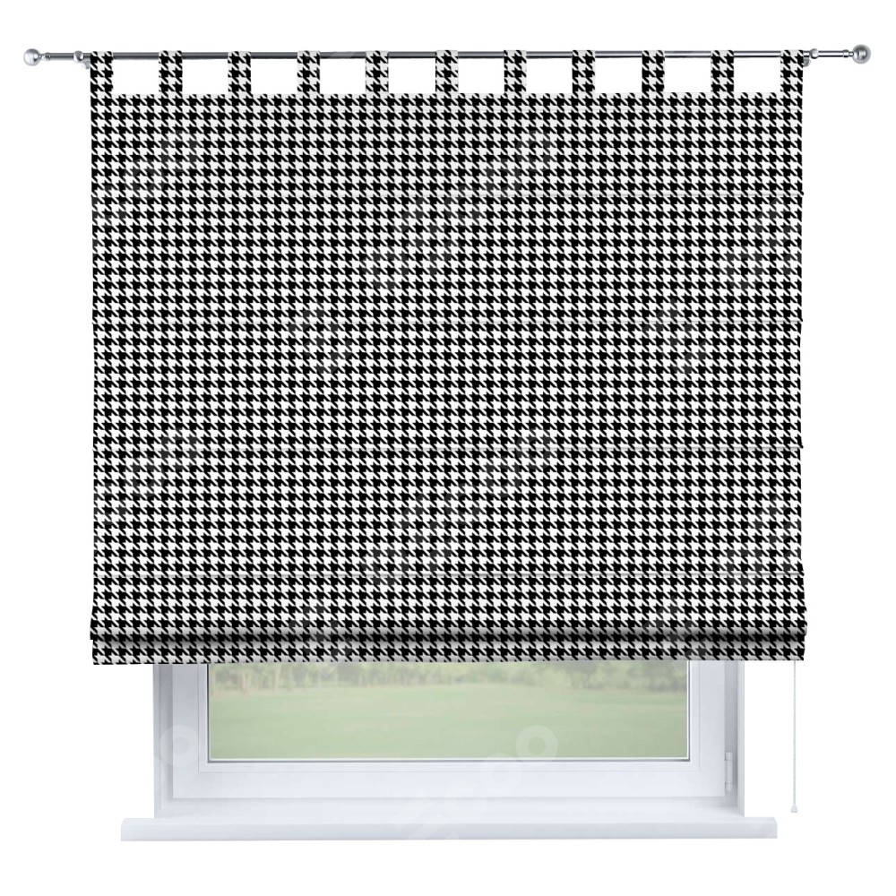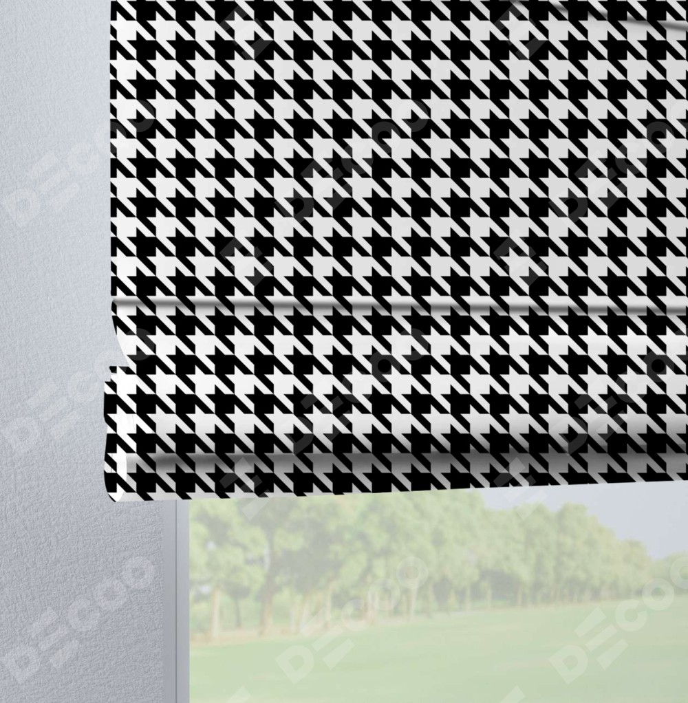Римская штора производителя «Cortin», используется для проёма, пошита из ткани блэкаут с нанесением сублимационной печати «Гусиные лапки» черно-белый». Данная модель пошита на петлях, комплектуется на выбор круглым карнизом и подходит для монтажа на стену. Римская штора на петлях имеет простую систему регулировки высоты, отличительным преимуществом данной модели является простой способ монтажа. Достаточно повесить ее на трубу и штора готова!