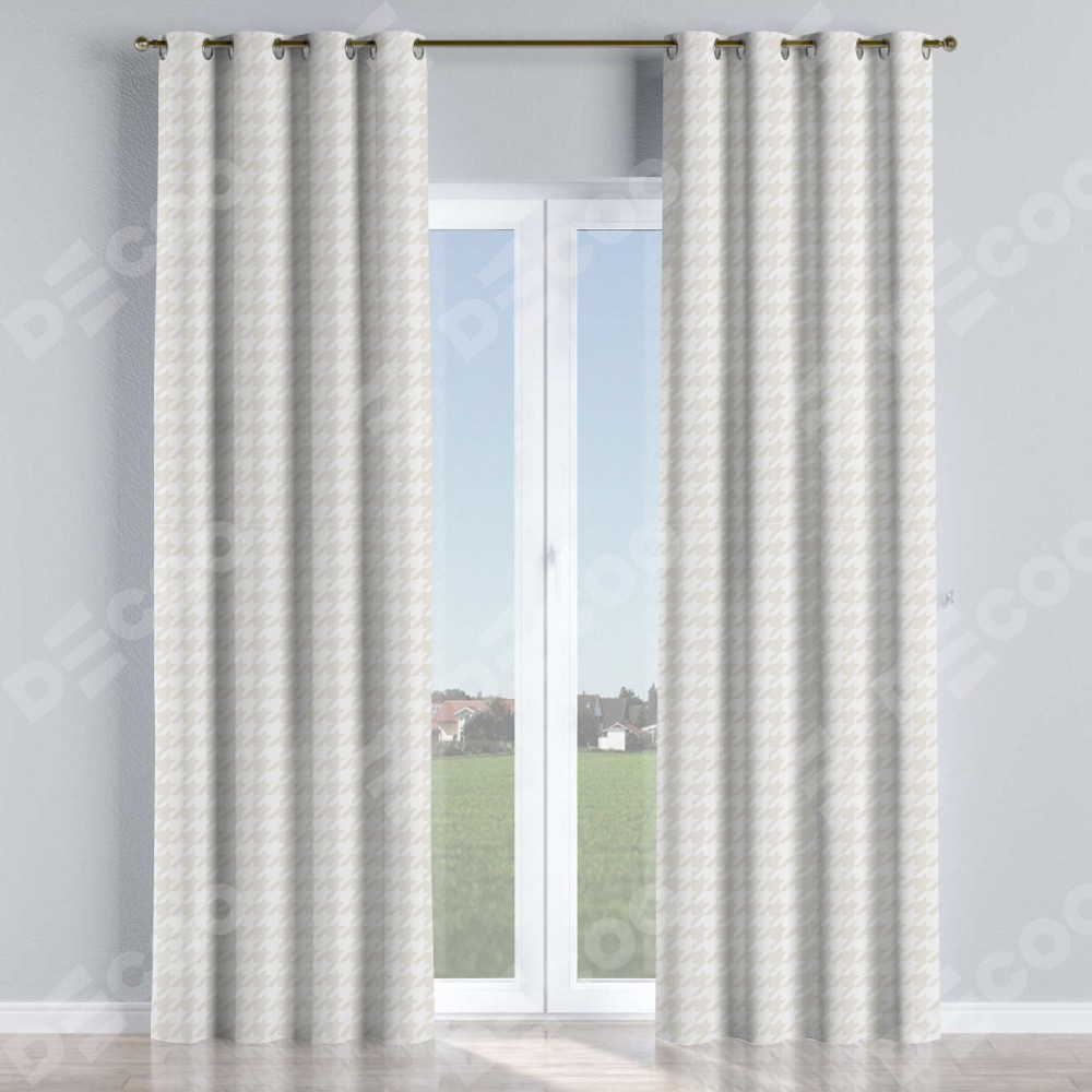Комплект прямых штор, от производителя «Cortin», пошиты из ткани блэкаут с нанесением сублимационной печати «Гусиные лапки» молочный». Данная модель пошита на люверсах, комплектуется на выбор круглым карнизом и подходит для монтажа на стену или потолок. Прямые шторы на люверсах шьются по стандарту с коэффициентом 1/2 (на 100 см. ширины проёма 200 см. ширины ткани), отличительным преимуществом данной модели является простой способ монтажа. Достаточно повесить ее на трубу и штора готова!
