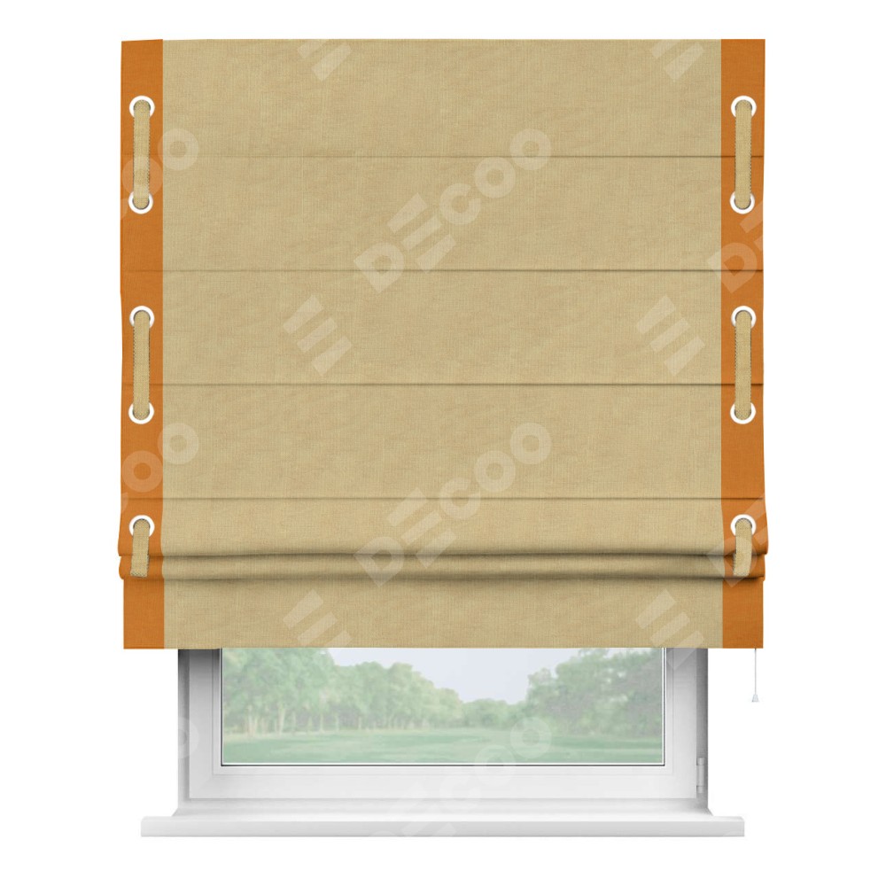 Римская штора «Кортин» для проема, канвас абрикосовый, с кантом Стрим Дуо (люверсы с пояском)