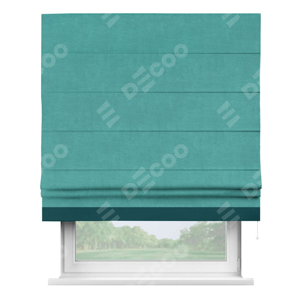 Римская штора «Кортин» для проема, канвас бирюзовый, с кантом Джестер