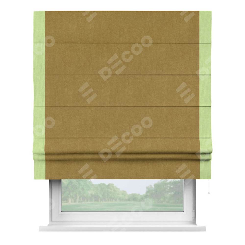 Римская штора «Кортин» для проема, канвас горчица, с кантом Стрим Дуо
