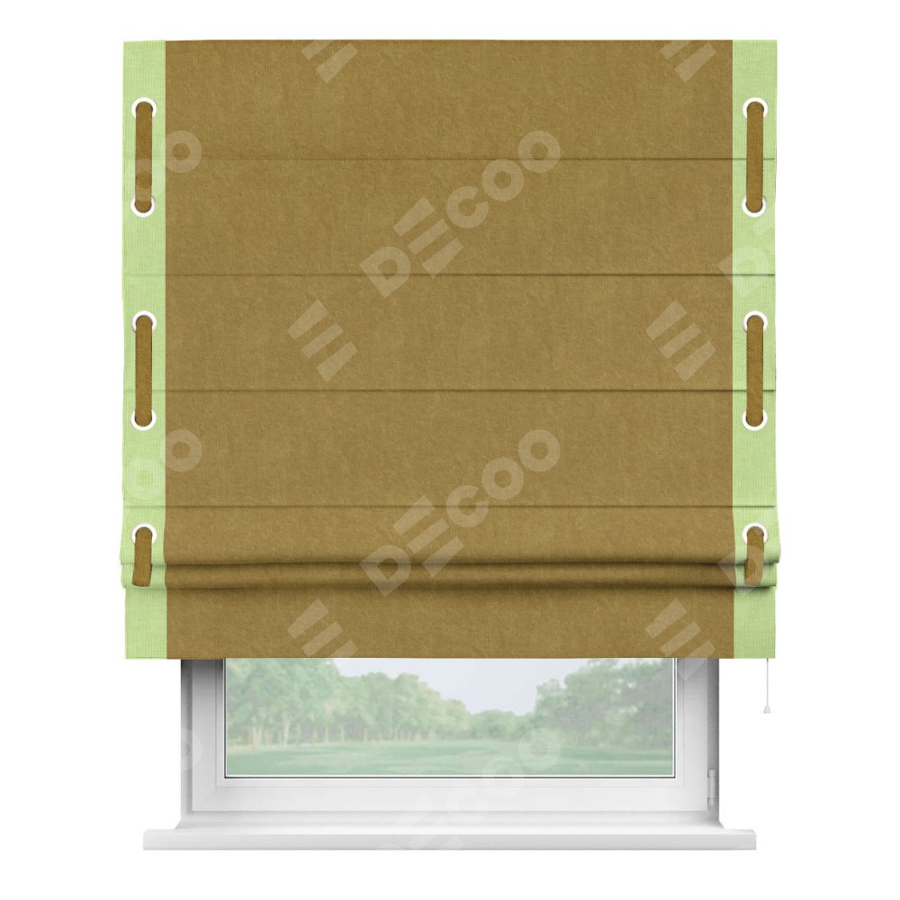 Римская штора «Кортин» для проема, канвас горчица, с кантом Стрим Дуо (люверсы с пояском)