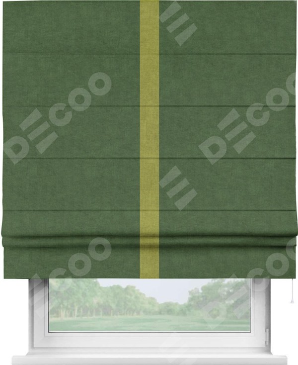 Римская штора «Кортин» для проема, канвас зелёный, с кантом Хайвэй