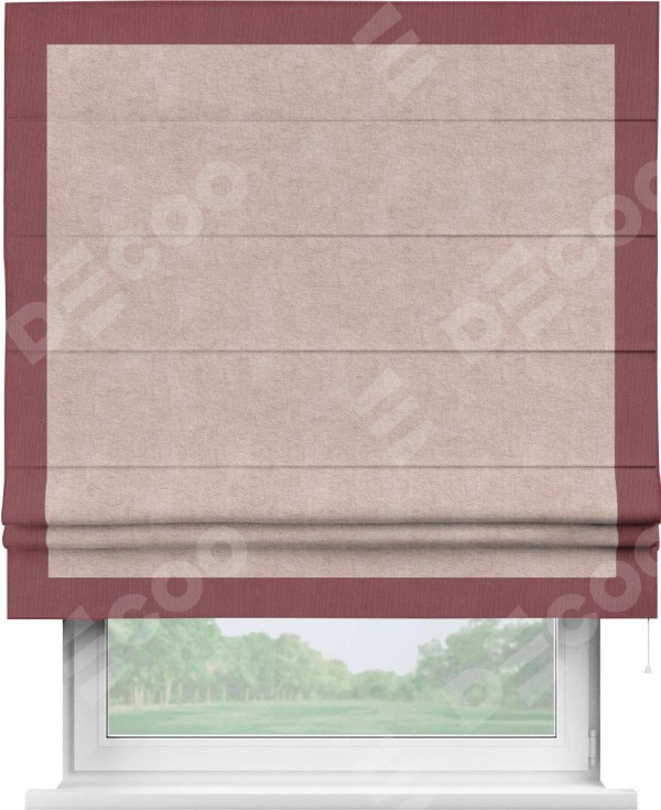 Римская штора «Кортин» для проема, канвас пудровый, с кантом Чесс
