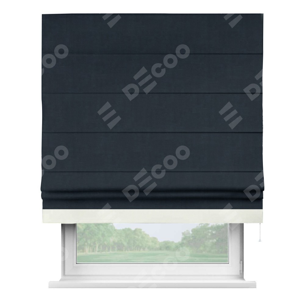 Римская штора «Кортин» для проема, канвас тёмно-синий, с кантом Джестер