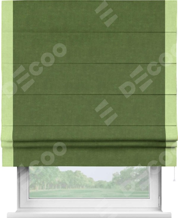 Римская штора «Кортин» для проема, канвас трава, с кантом Стрим Дуо