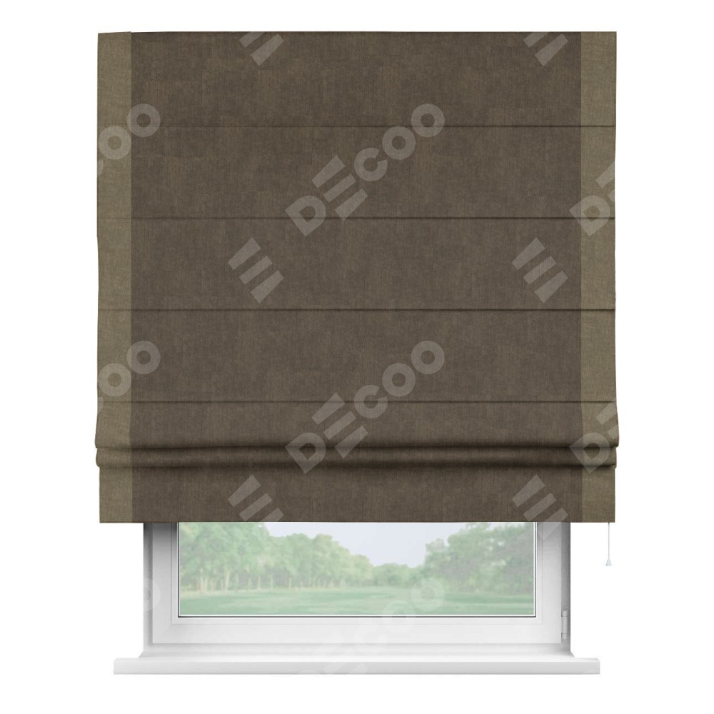 Римская штора «Кортин» для проема, канвас шоколадный, с кантом Стрим Дуо