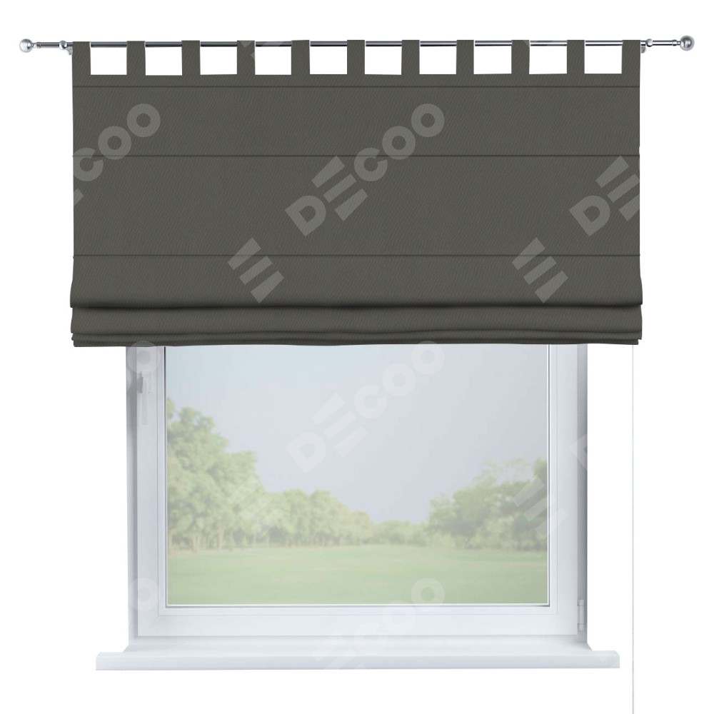 Римская штора производителя «Cortin», используется для проёма, пошита из ткани блэкаут однотонный тёмно-серый, артикул ткани 91570. Данная модель пошита на петлях, комплектуется на выбор круглым карнизом и подходит для монтажа на стену. Римская штора на петлях имеет простую систему регулировки высоты, отличительным преимуществом данной модели является простой способ монтажа. Достаточно повесить ее на трубу и штора готова!