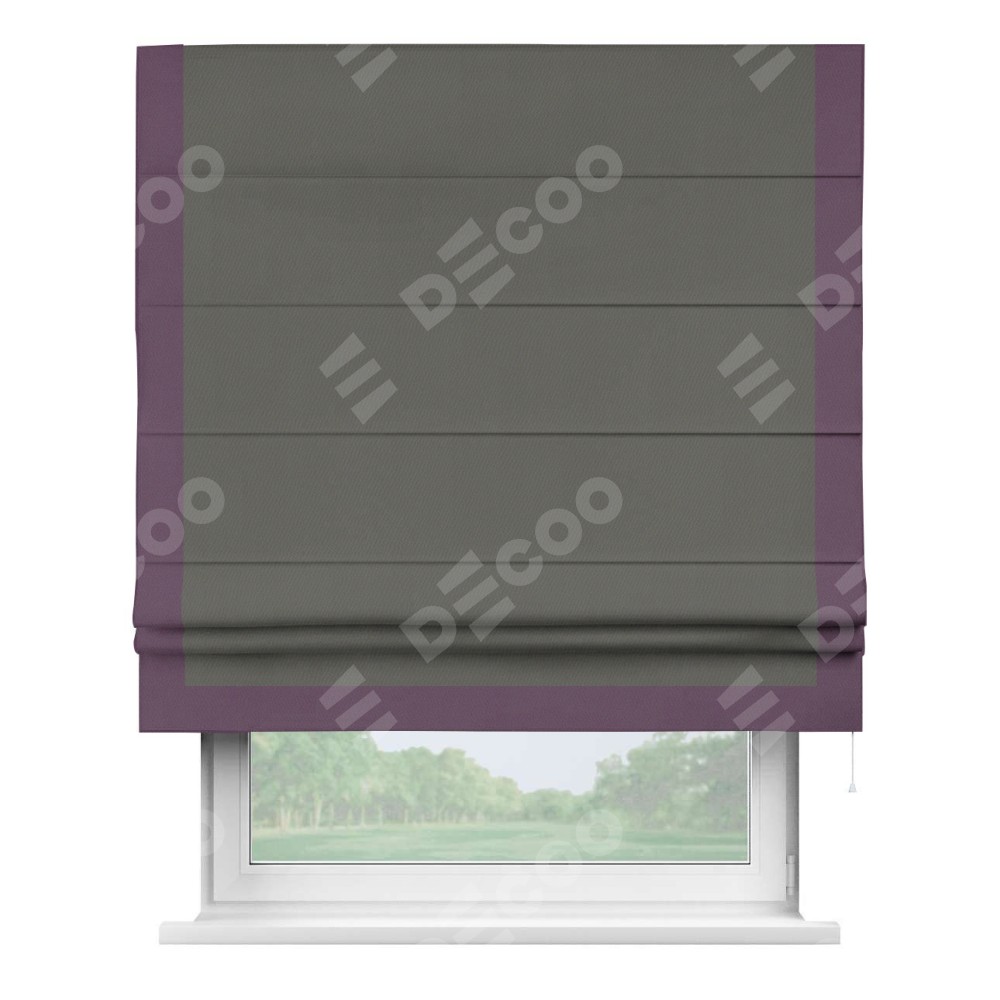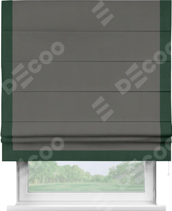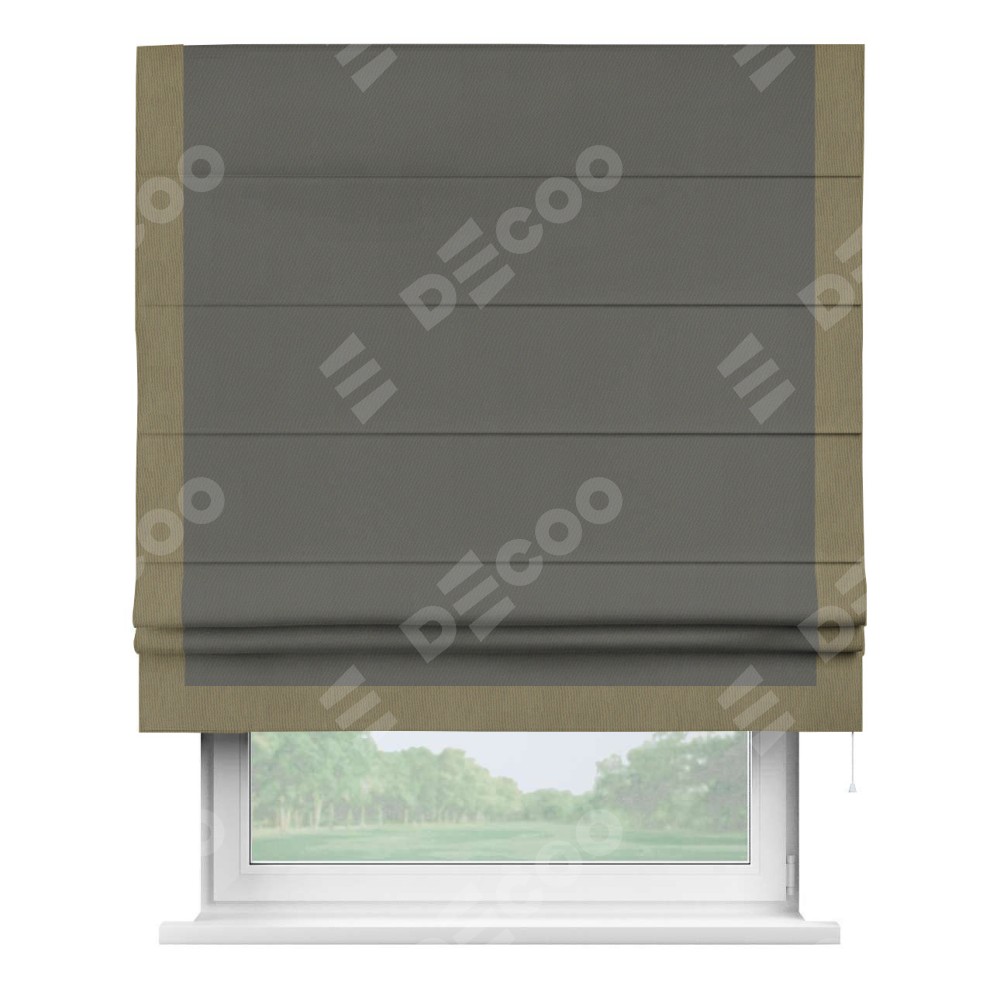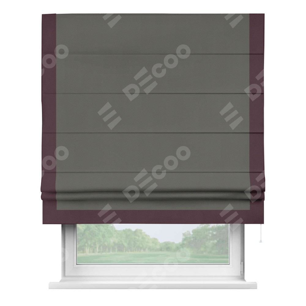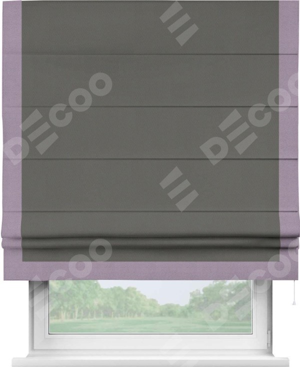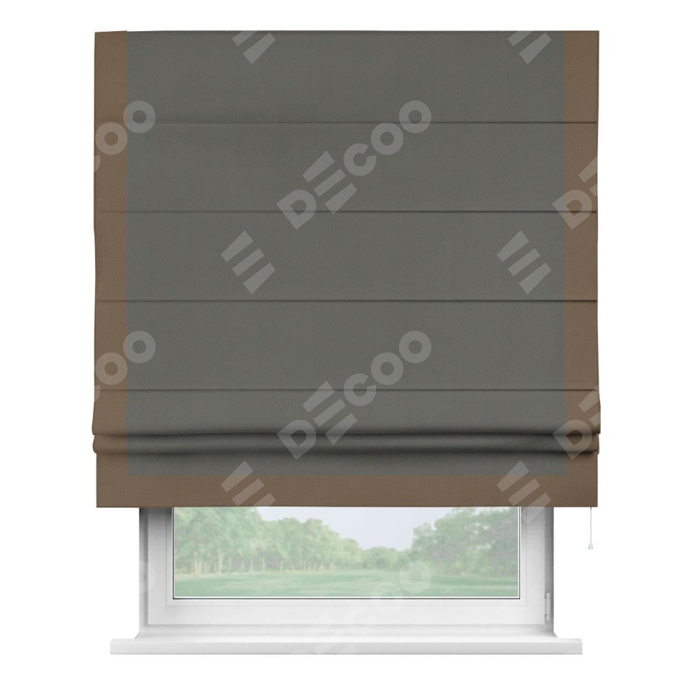 Римская штора «Кортин» для проема, блэкаут однотонный тёмно-серый с кантом Виктория