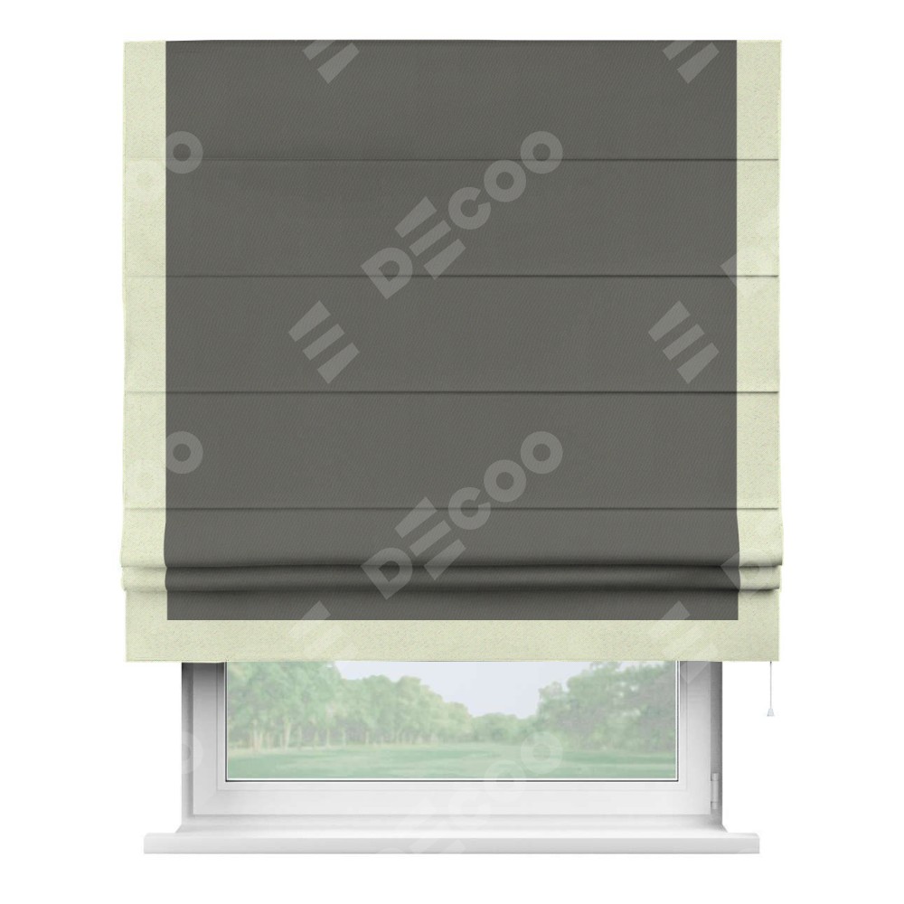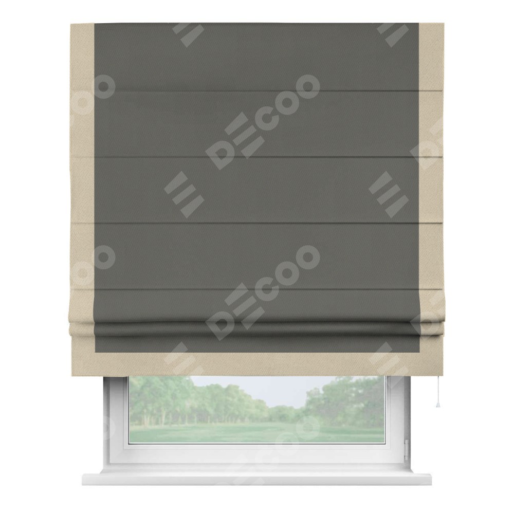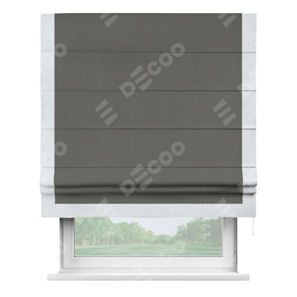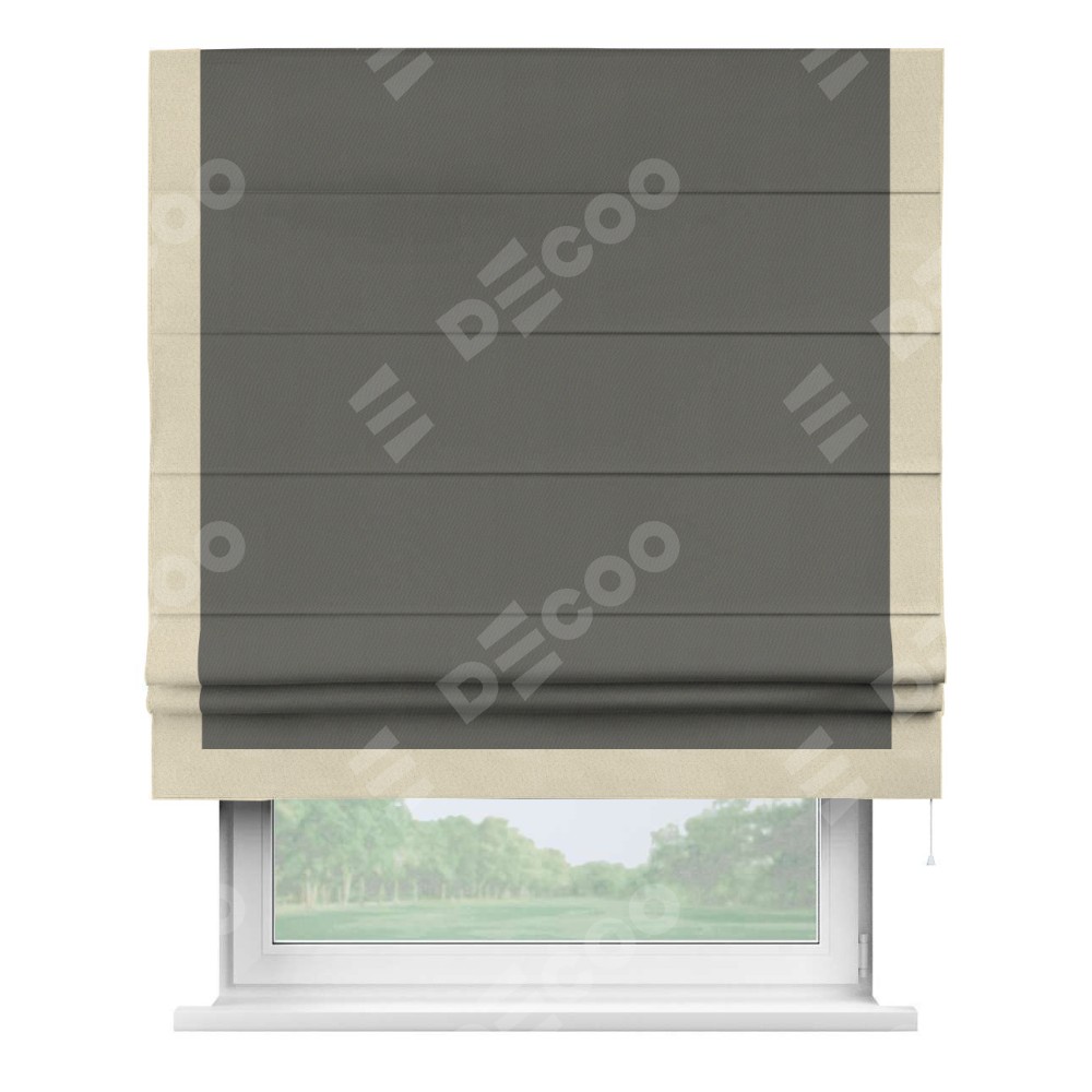 Римская штора «Кортин» для проема, блэкаут однотонный тёмно-серый с кантом Виктория