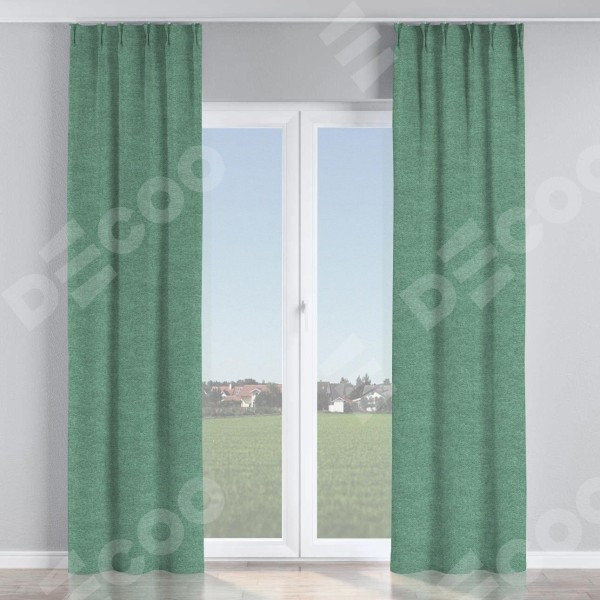 Комплект прямых штор, от производителя «Cortin», пошиты из ткани твид блэкаут бирюзовый, артикул ткани 90934. С изнаночной стороны в верхней части штор пристрачивается шторная лента с декоративными складками «Кустик». Для создания элегантных складок прямые шторы шьются по стандарту с коэффициентом 1:2 (на 100 см. ширины проёма 200 см. ширины ткани).