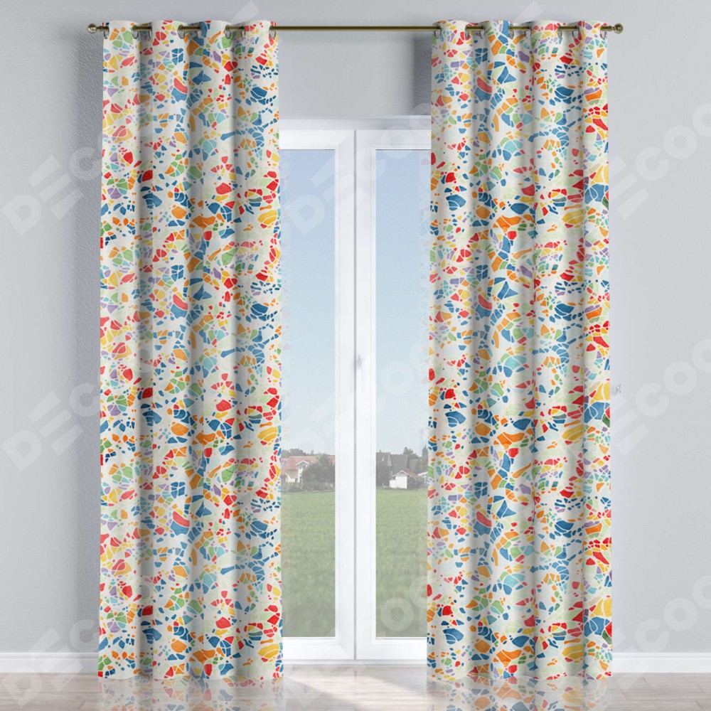 Комплект прямых штор, от производителя «Cortin», пошиты из ткани блэкаут с нанесением сублимационной печати «Калейдоскоп». Данная модель пошита на люверсах, комплектуется на выбор круглым карнизом и подходит для монтажа на стену или потолок. Прямые шторы на люверсах шьются по стандарту с коэффициентом 1/2 (на 100 см. ширины проёма 200 см. ширины ткани), отличительным преимуществом данной модели является простой способ монтажа. Достаточно повесить ее на трубу и штора готова!