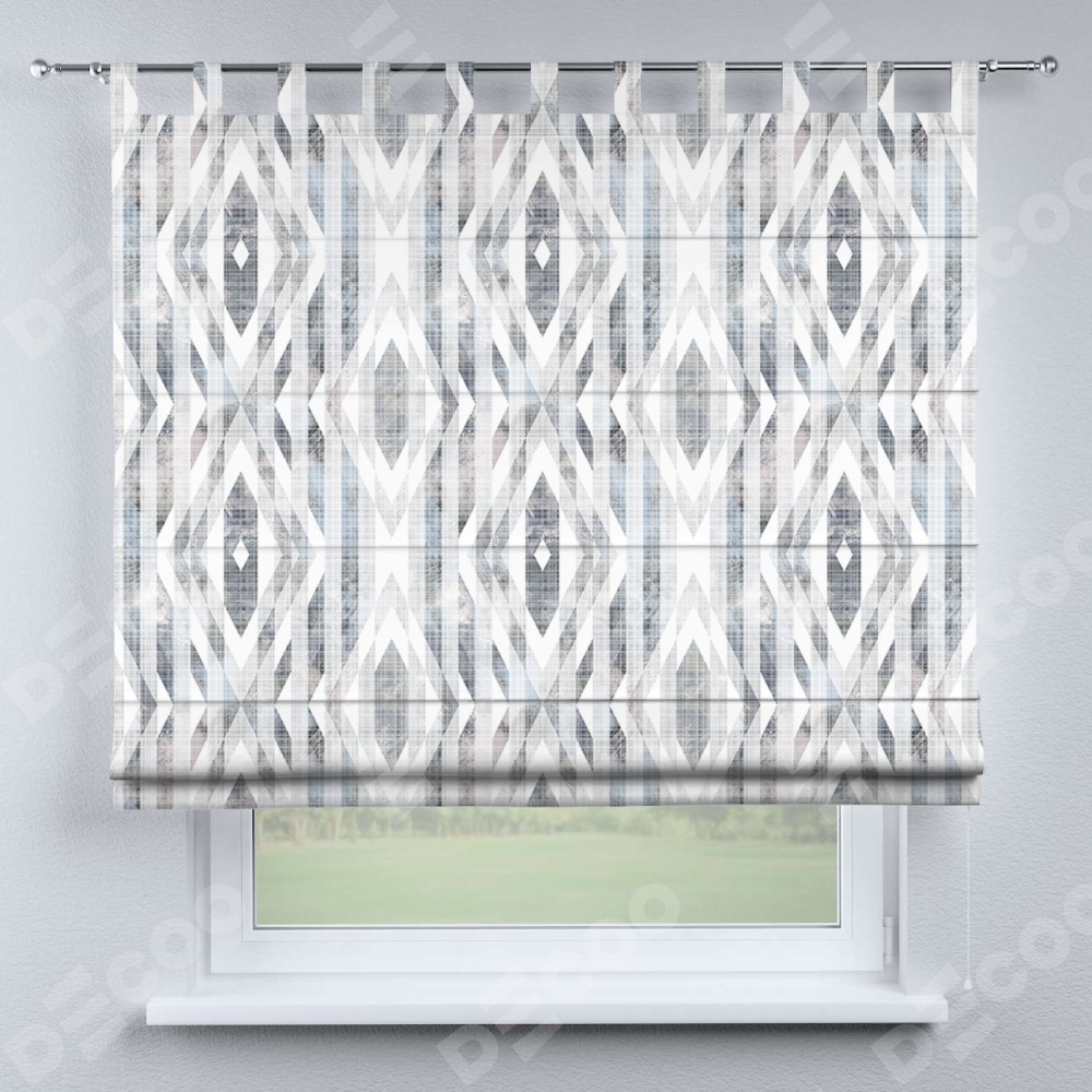 Классическая римская штора представляет собой полотно прикрепленное к карнизу, с обратной стороны полотна вшиты планки. С их помощь при сборе шторы образуются красивые горизонтальные складки.