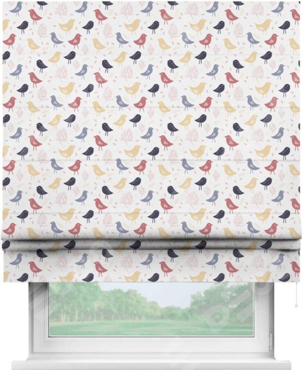 Римская штора «Кортин» для проема «Цветные птички»