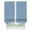 Римская штора производителя «Cortin», используется для проёма, пошита из ткани канвас голубой, артикул ткани 92729. Отделка шторы кантом «Хайвей» (молочный v-93), ткань для канта используется из канваса разной расцветки на выбор. Имеет универсальный механизм и подходит для монтажа: на потолок, на стену и в нишу.