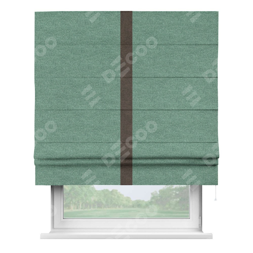Римская штора производителя «Cortin», используется для проёма, пошита из ткани твид блэкаут бирюзовый, артикул 90934. Отделка шторы кантом «Хайвэй», ткань для канта используется из твида разной расцветки на выбор. Имеет универсальный механизм и подходит для монтажа: на потолок, на стену и в нишу.