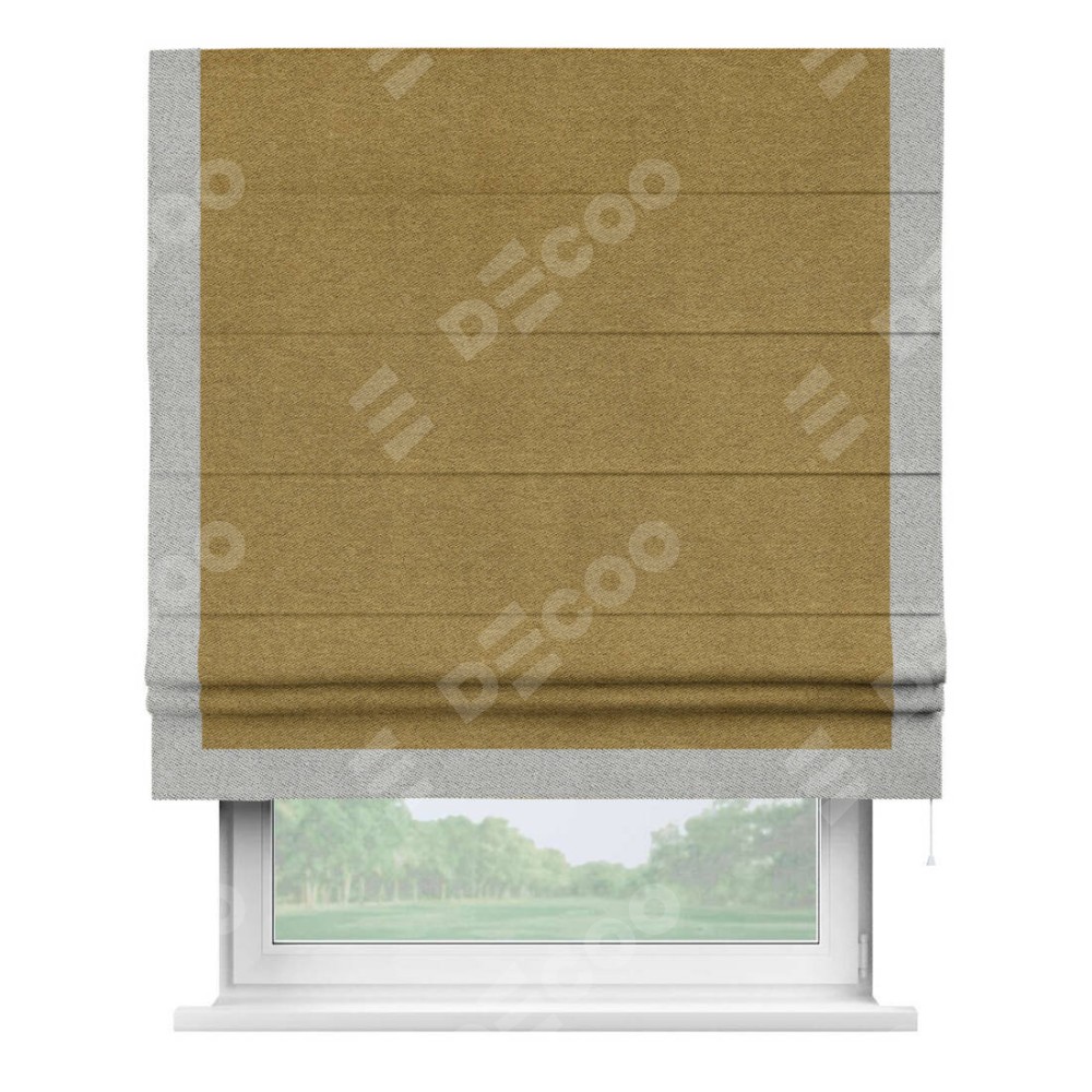 Римская штора «Кортин» с кантом Виктория, для проема, твид блэкаут горчица