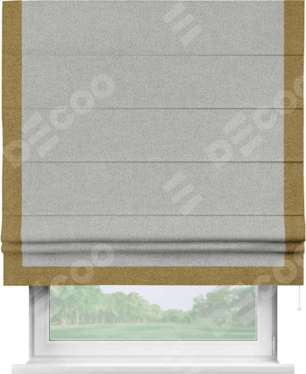 Римская штора «Кортин» для проема, твид блэкаут светло-серый, с кантом Виктория