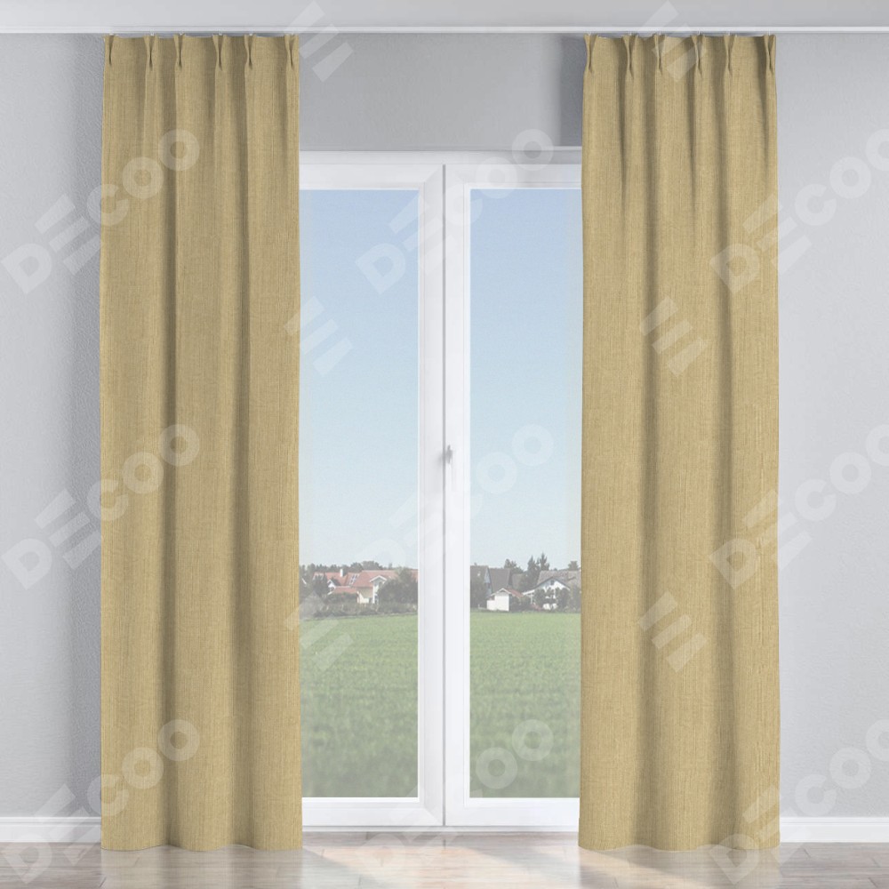 Комплект прямых штор, от производителя «Cortin», пошиты из ткани лён димаут песочный, артикул ткани 16256. С изнаночной стороны в верхней части штор пристрачивается шторная лента с декоративными складками «Кустик». Для создания элегантных складок прямые шторы шьются по стандарту с коэффициентом 1:2 (на 100 см. ширины проёма 200 см. ширины ткани).
