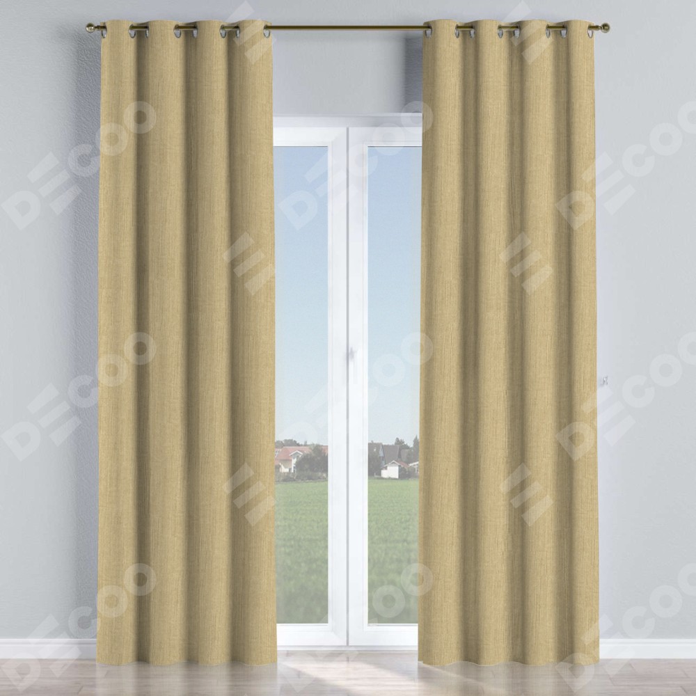 Комплект прямых штор, от производителя «Cortin», пошиты из ткани лён димаут песочный, артикул ткани 16256. Данная модель пошита на люверсах, комплектуется на выбор круглым карнизом и подходит для монтажа на стену или потолок. Прямые шторы на люверсах шьются по стандарту с коэффициентом 1/2 (на 100 см. ширины проёма 200 см. ширины ткани), отличительным преимуществом данной модели является простой способ монтажа. Достаточно повесить ее на трубу и штора готова!