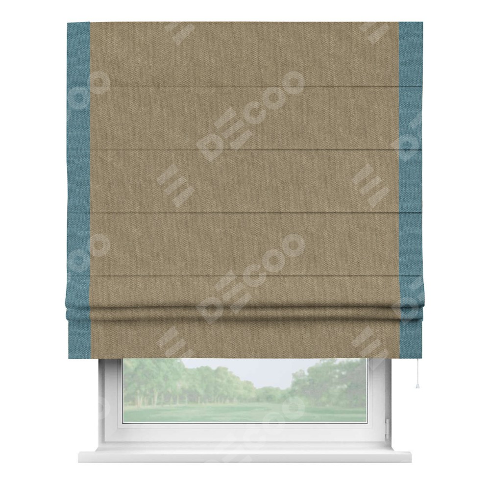Римская штора «Кортин» для проема, лён димаут тёмно-бежевый с кантом Стрим Дуо