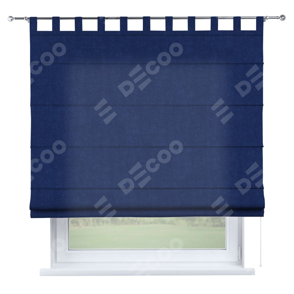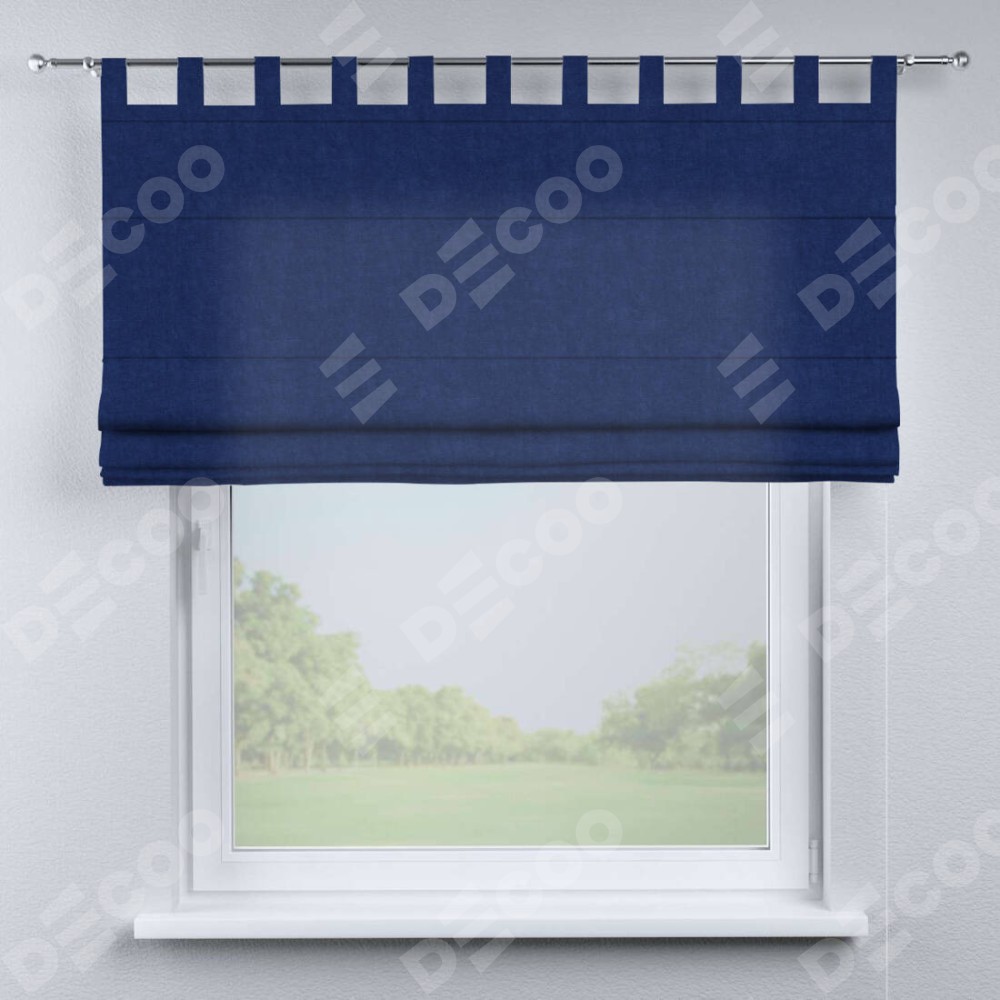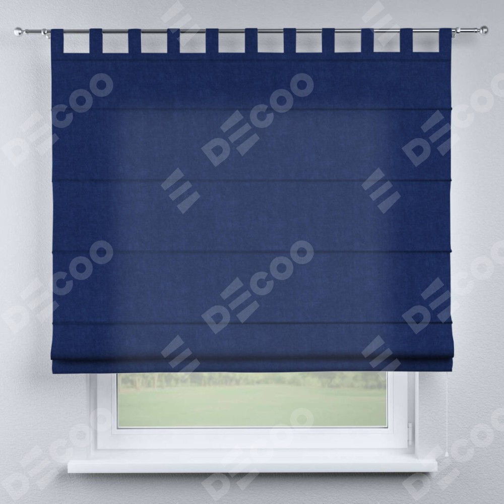 Римская штора производителя «Cortin», используется для проёма, пошита из ткани канвас синий электрик, артикул ткани v-355. Данная модель пошита на петлях, комплектуется на выбор круглым карнизом и подходит для монтажа на стену. Римская штора на петлях имеет простую систему регулировки высоты, отличительным преимуществом данной модели является простой способ монтажа. Достаточно повесить ее на трубу и штора готова!