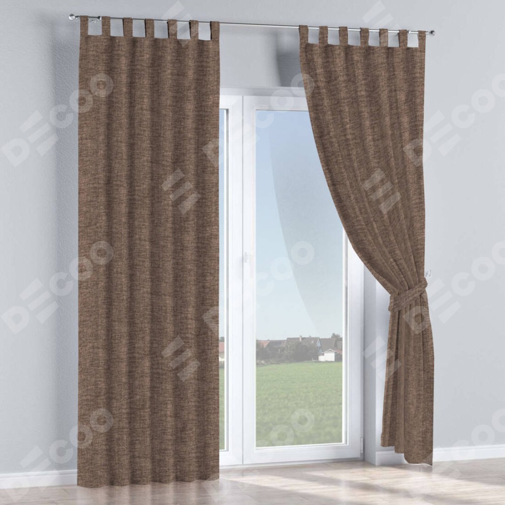 Комплект прямых штор, от производителя «Cortin», пошиты из ткани рогожка димаут коричневый, артикул ткани 91018. Данная модель пошита на петлях, комплектуется на выбор круглым карнизом и подходит для монтажа на стену или потолок. Прямые шторы на петлях шьются по стандарту с коэффициентом 1/2 (на 100 см. ширины проёма 200 см. ширины ткани), отличительным преимуществом данной модели является простой способ монтажа. Достаточно повесить ее на трубу и штора готова!