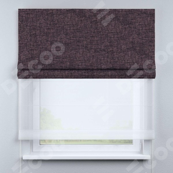 Двойная римская штора «День-ночь» от производителя Cortin предназначена для использования в проёмах. Эта штора уникальна тем, что состоит из двух полотен. На лицевой стороне находится рогожка димаут розово-коричневый (артикул: 91020), обеспечивающий эффективное затемнение. В комплект также входит вторая ткань — легкий белый тюль (артикул: V-01), который добавляет изящества и легкости оформлению окна. Кроме того, доступны и другие разновидности ткани тюль, выбор которых доступен по ссылке .