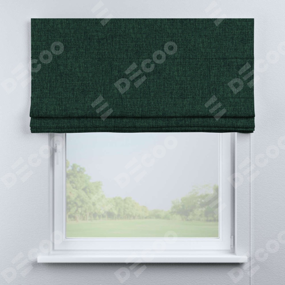 Классическая римская штора производителя «Cortin», пошита из ткани рогожка димаут тёмно-зелёный, артикул: 91022. Имеет универсальный механизм и подходит для монтажа: на потолок, на стену и в нишу.