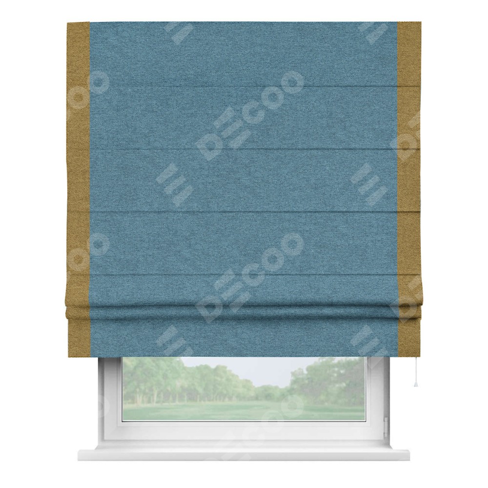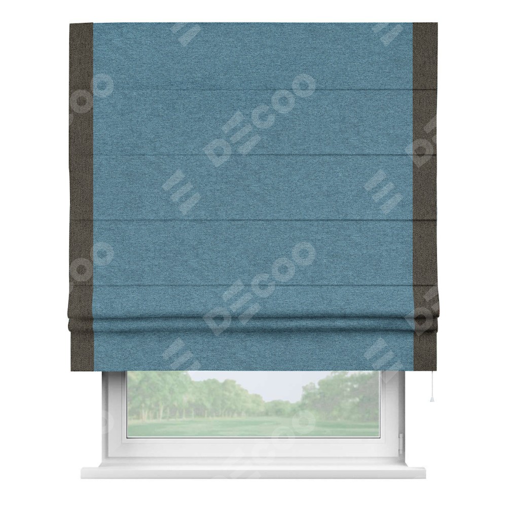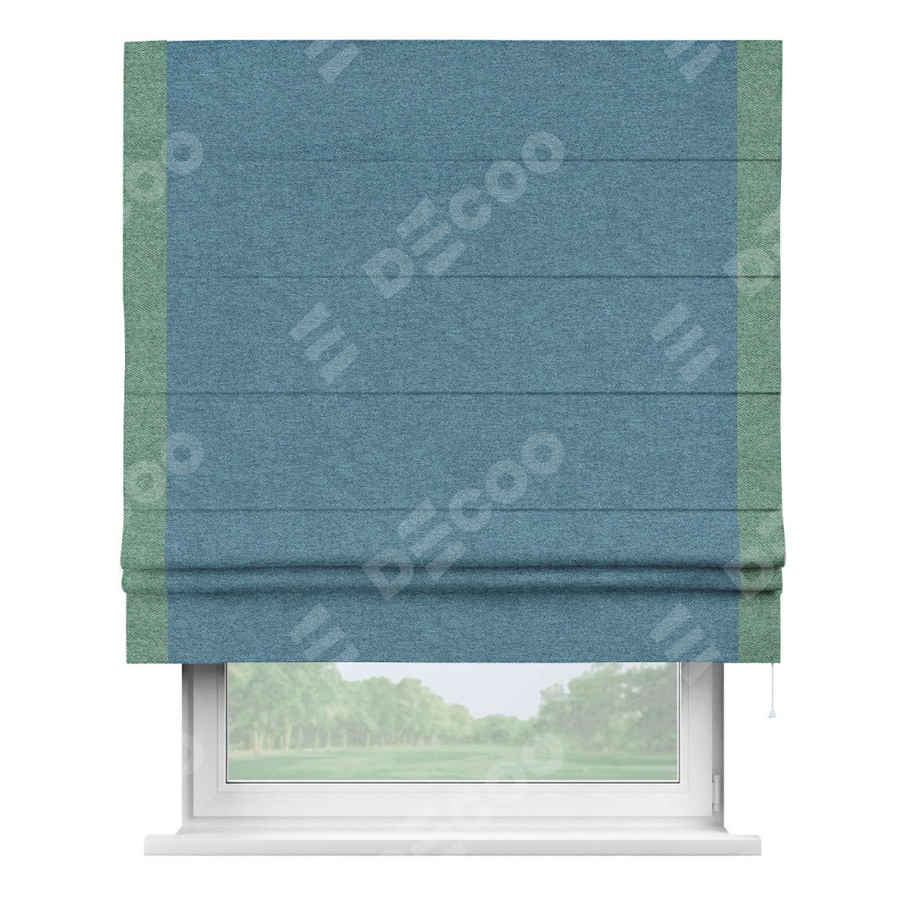 Римская штора «Кортин» с кантом Стрим Дуо, для проема, ткань твид блэкаут, светло-синий