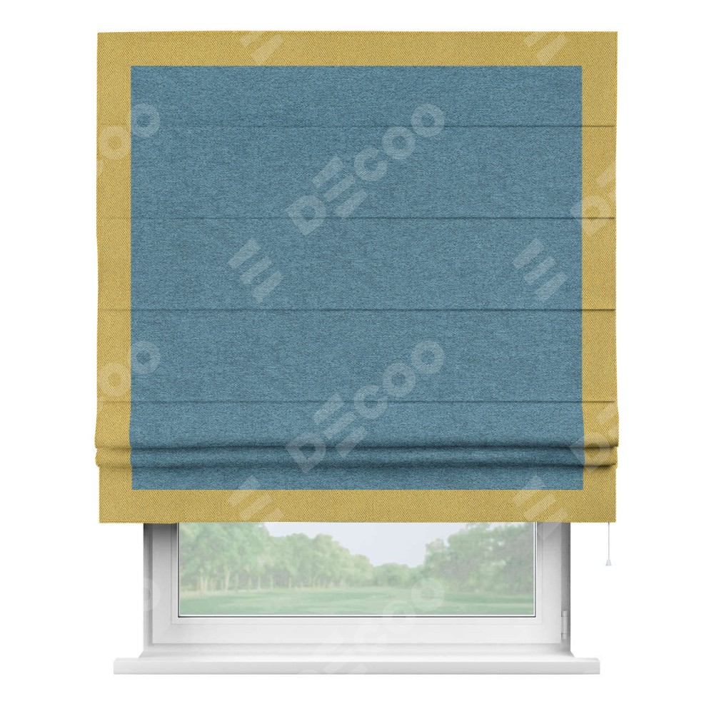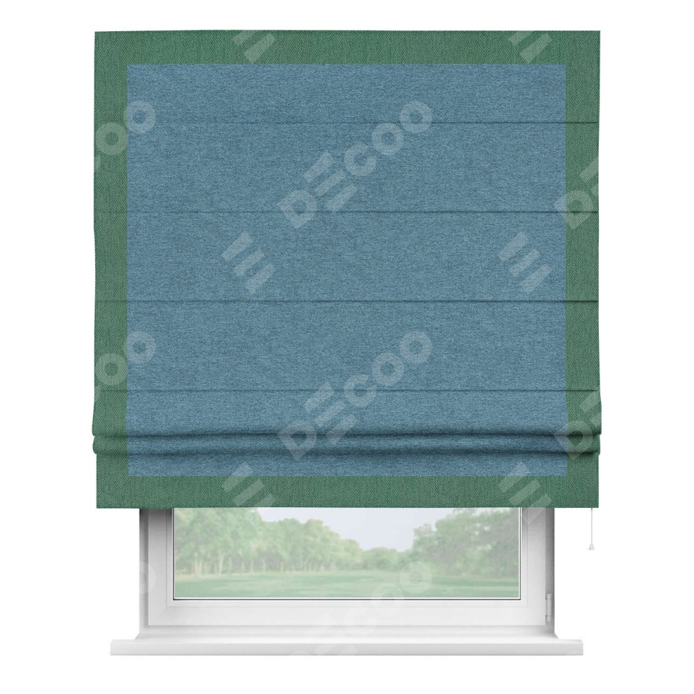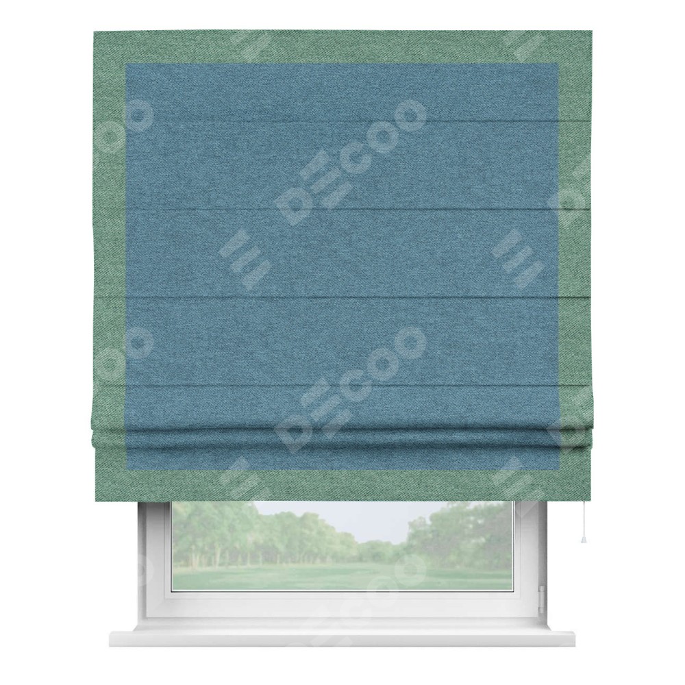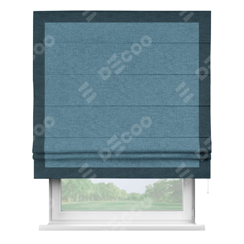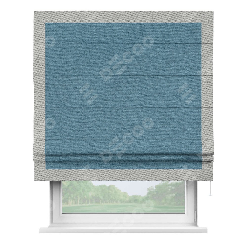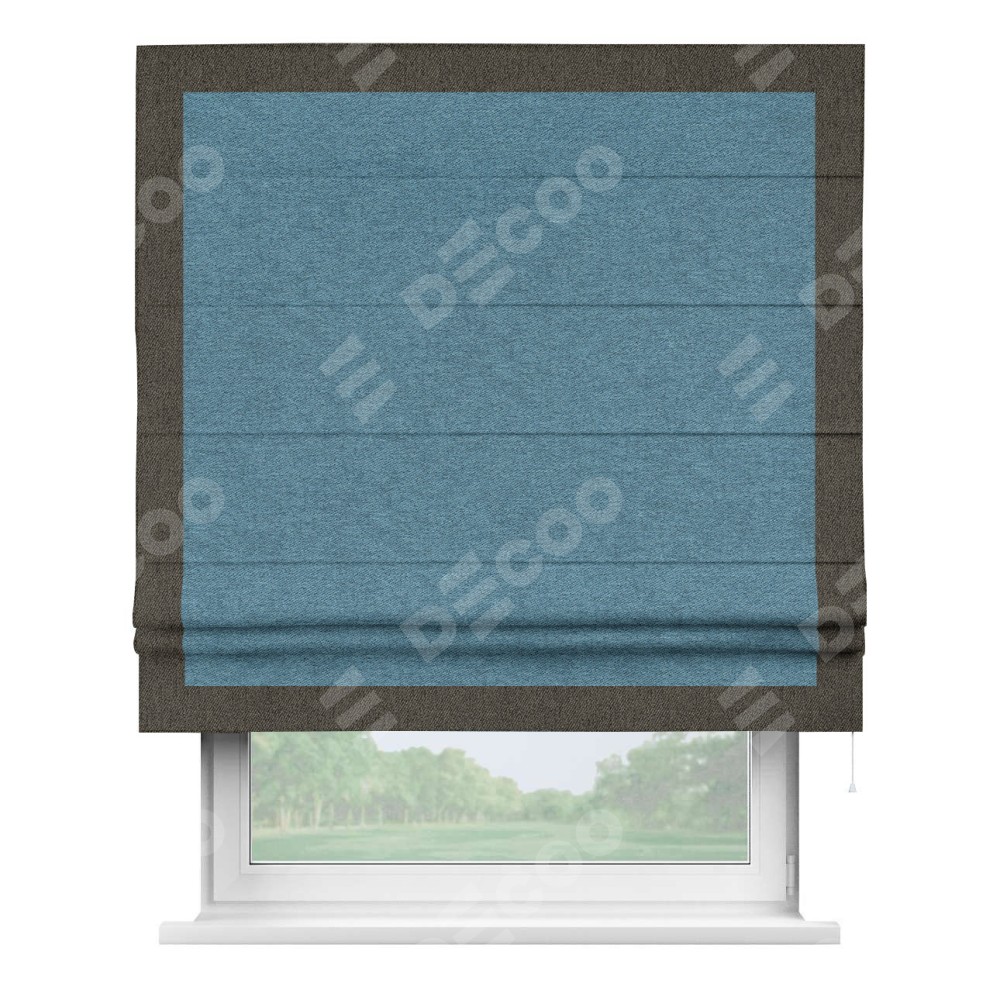 Римская штора «Кортин» с кантом Чесс, для проема, ткань твид блэкаут, светло-синий