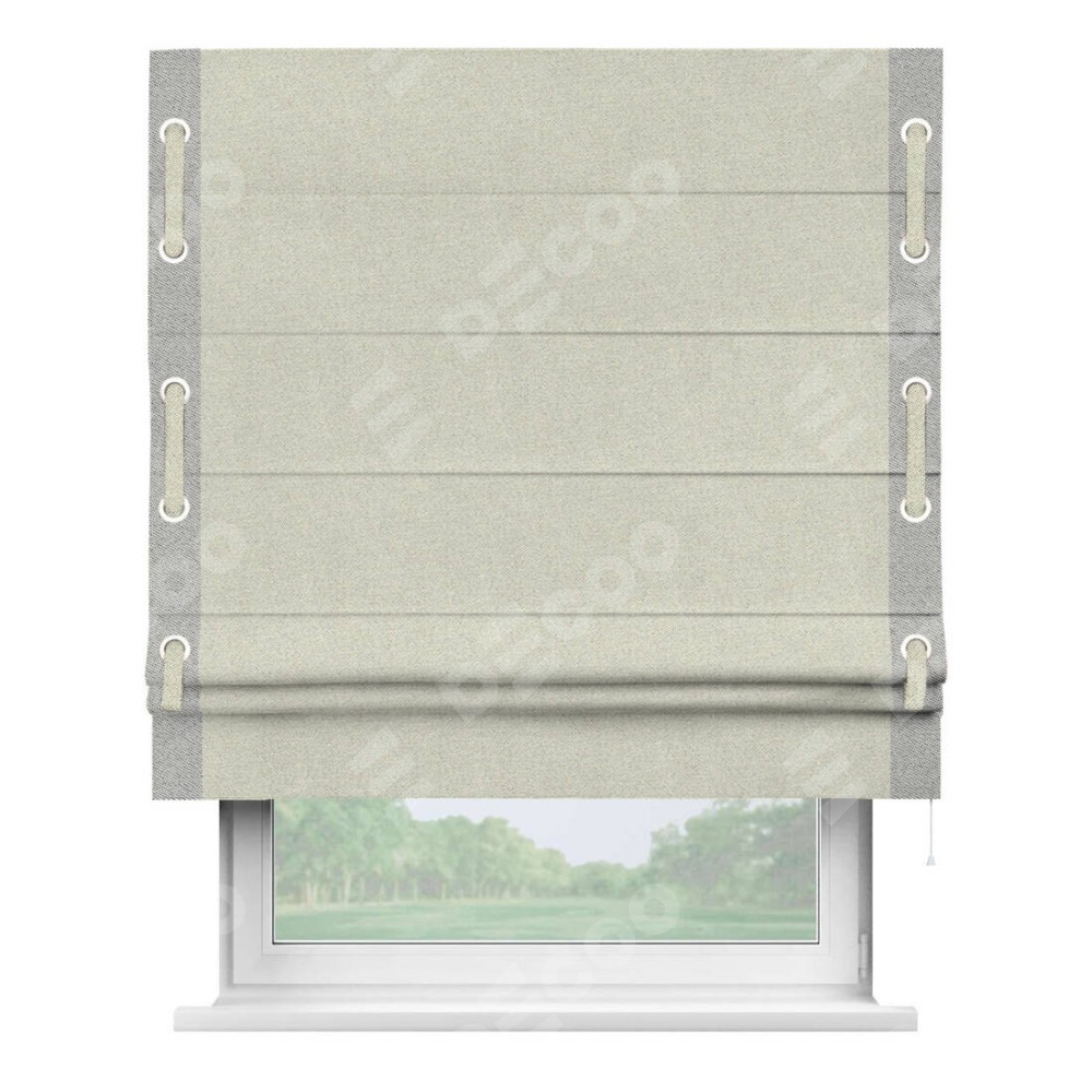 Римская штора «Кортин» с кантом Стрим Дуо (люверсы с пояском), для проема, ткань твид блэкаут, шампань