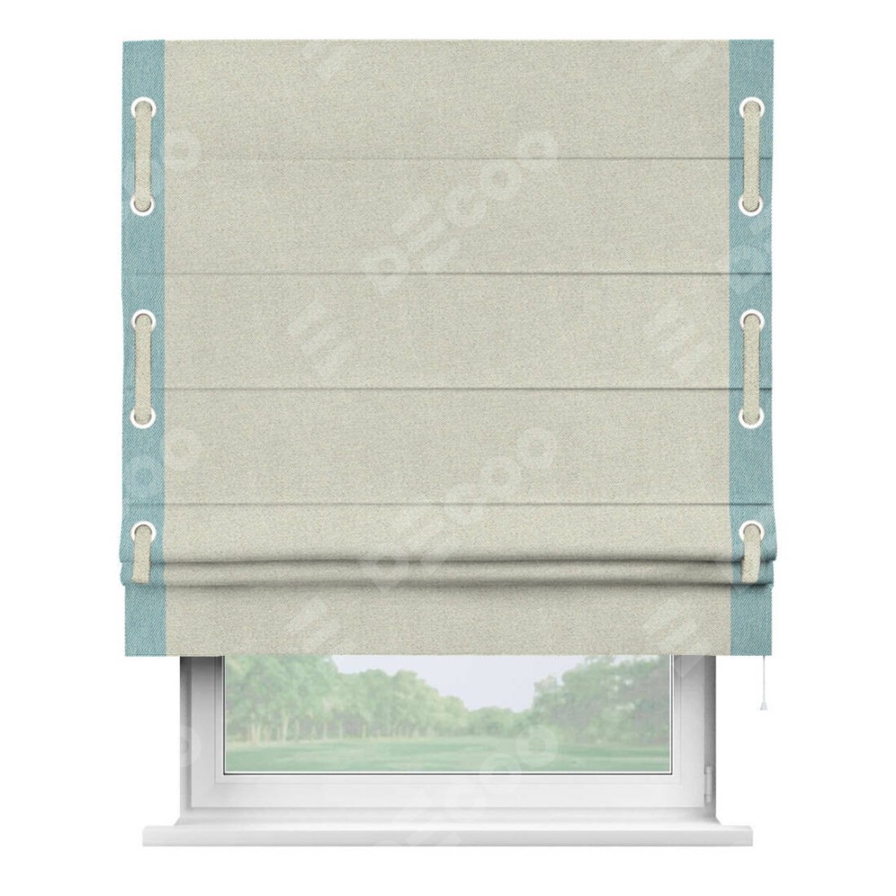 Декоративные люверсы на кантах могут выполнять как чисто украшательную функцию, так и быть частью механизма для протягивания декоративного пояска, что добавляет изделию уникальности и игривости. Поясок из основного цвета римской шторы, протянутый через люверсы, не только укрепляет вертикальную композицию, но и позволяет создавать различные драпировки, регулируя внешний вид шторы по желанию.