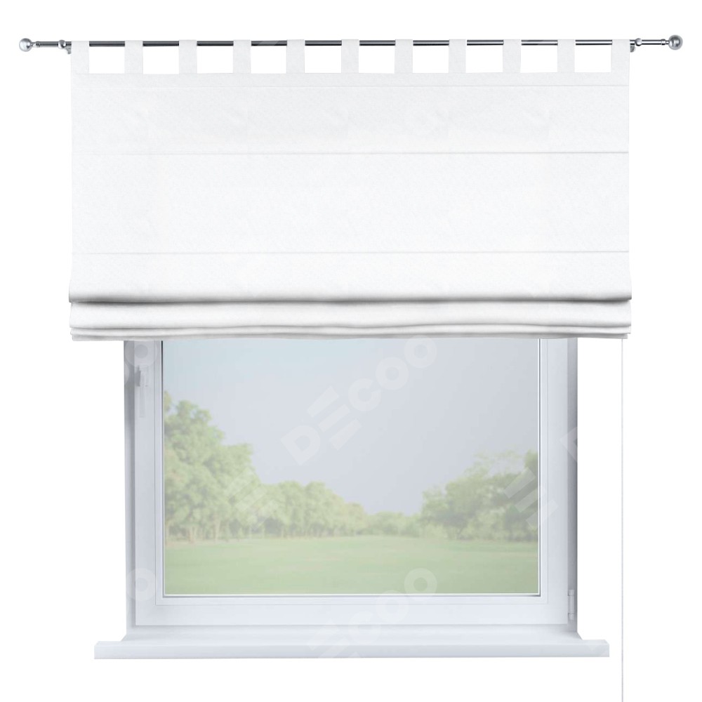Римская штора производителя «Cortin», используется для проёма, пошита из ткани вельвет белоснежный, артикул ткани 92698. Данная модель пошита на петлях, комплектуется на выбор круглым карнизом и подходит для монтажа на стену. Римская штора на петлях имеет простую систему регулировки высоты, отличительным преимуществом данной модели является простой способ монтажа. Достаточно повесить ее на трубу и штора готова!