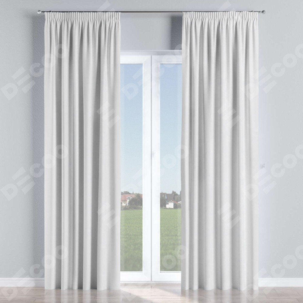Комплект прямых штор, от производителя «Cortin», пошиты из ткани вельвет белоснежный, артикул ткани 92698. С изнаночной стороны в верхней части штор пристрачивается шторная лента с декоративными складками «Карандаш». Для создания элегантных складок прямые шторы шьются по стандарту с коэффициентом 1:2 (на 100 см. ширины проёма 200 см. ширины ткани).