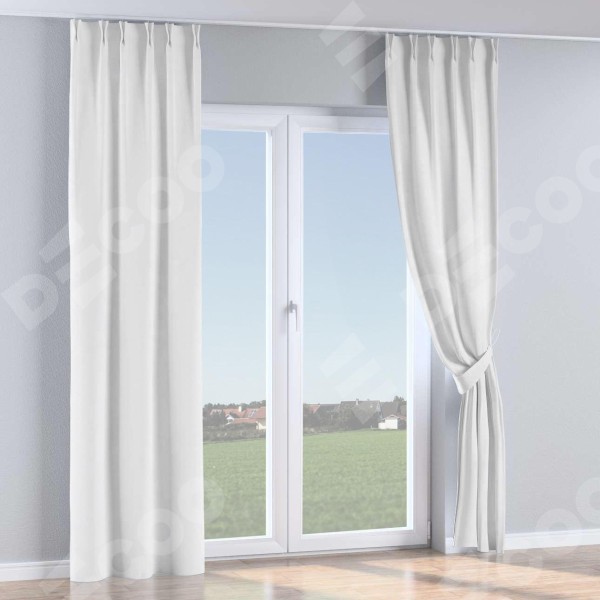 Комплект прямых штор, от производителя «Cortin», пошиты из ткани вельвет белоснежный, артикул ткани 92698. С изнаночной стороны в верхней части штор пристрачивается шторная лента с декоративными складками «Кустик». Для создания элегантных складок прямые шторы шьются по стандарту с коэффициентом 1:2 (на 100 см. ширины проёма 200 см. ширины ткани).