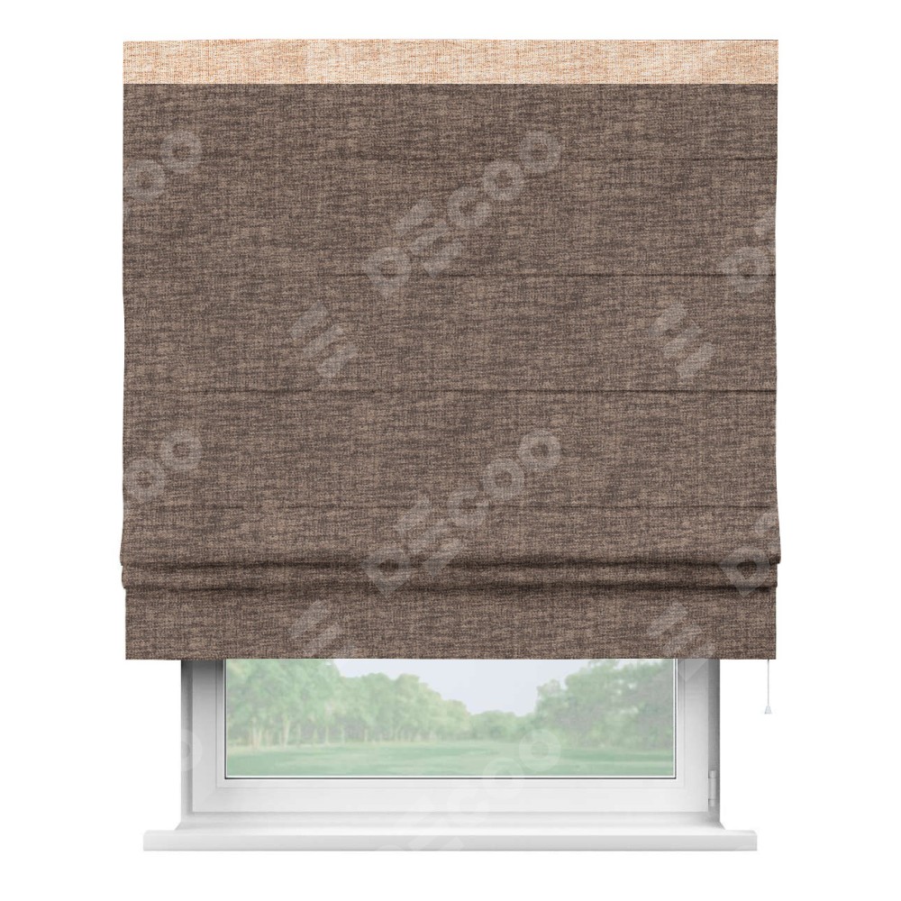 Римская штора «Кортин» для проёма, рогожка димаут коричневый, с кантом Кинг