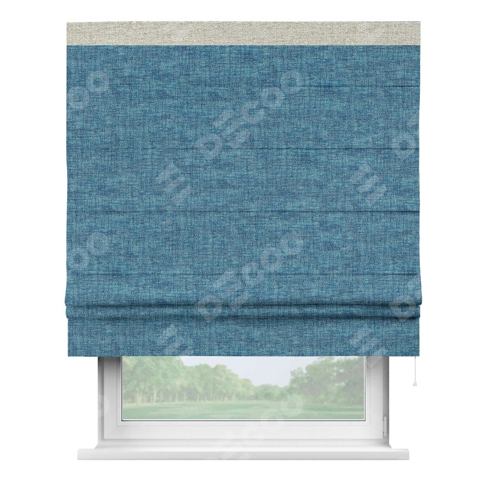Римская штора «Кортин» для проёма, рогожка димаут лазурно-синий, с кантом Кинг
