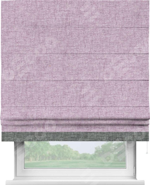 Римская штора пошита из ткани рогожка димаут розовый, артикул: 91031, с отделкой кантом «Джестер» выделяется своей уникальной особенностью — кантом, расположенным только снизу шторы. Этот дизайн добавляет оригинальности и игривости оконному оформлению, делая акцент на нижней части шторы и создавая интересный визуальный эффект. Отделка кантом на нижнем крае не только служит эстетической функции, но и способствует увеличению прочности и износостойкости ткани в этом месте.