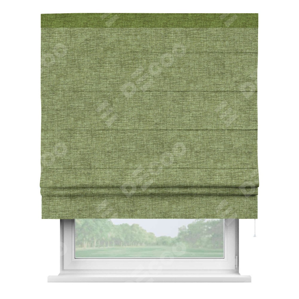 Римская штора «Кортин» для проёма, рогожка димаут травяной, с кантом Кинг