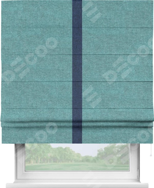 Римская штора «Кортин» с кантом Хайвэй, для проема, ткань лён кашемир бирюзовый
