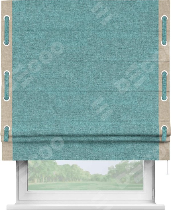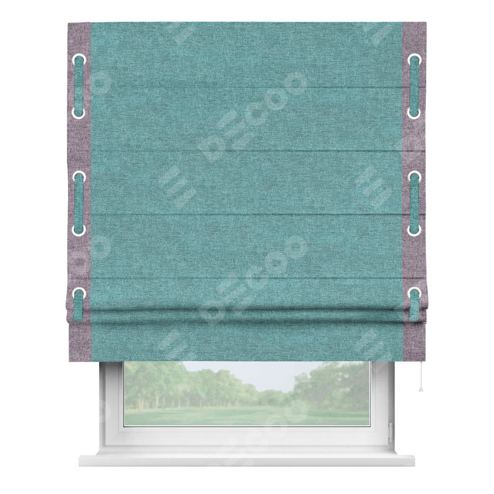Римская штора «Кортин» с кантом Стрим Дуо (люверсы с пояском), для проема, ткань лён кашемир бирюзовый