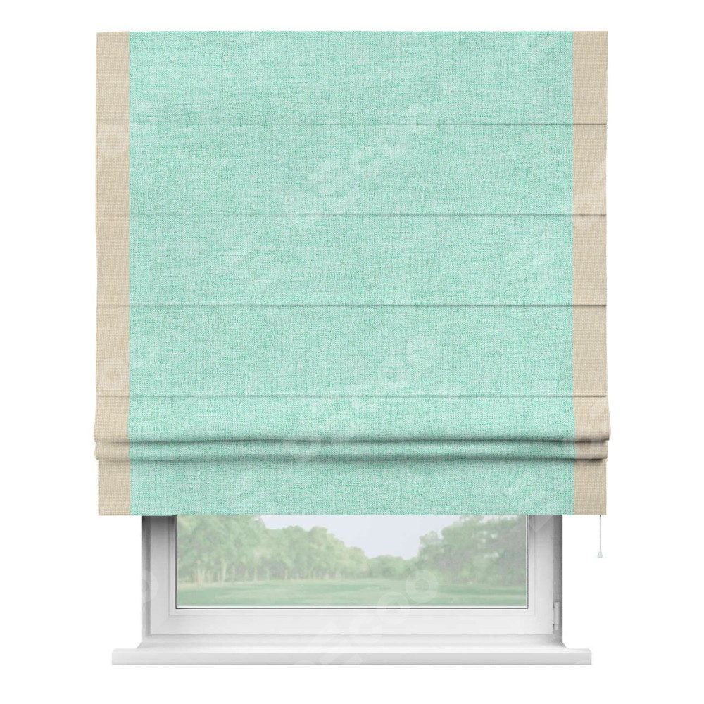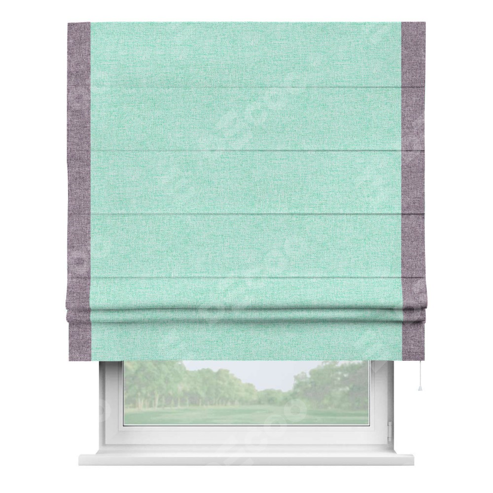 Римская штора «Кортин» для проёма, лён кашемир мятный, с кантом Стрим Дуо
