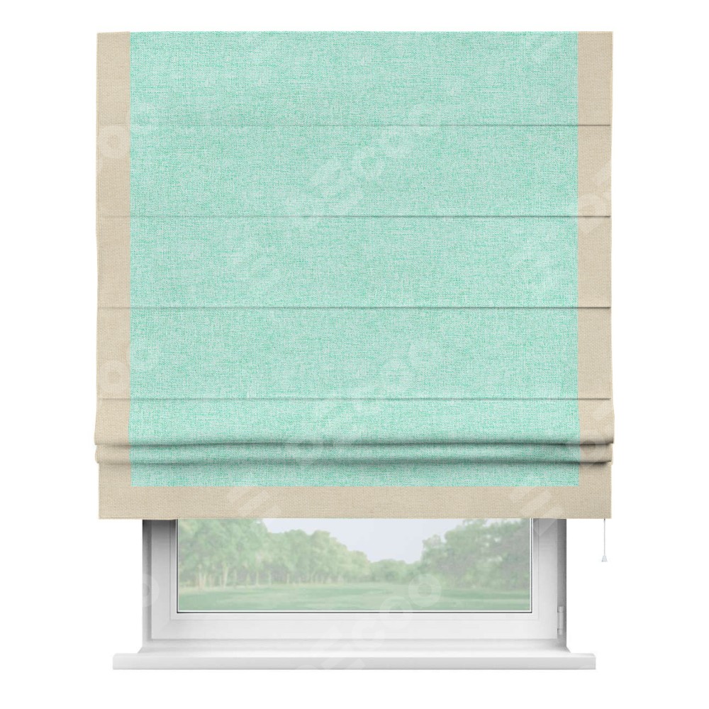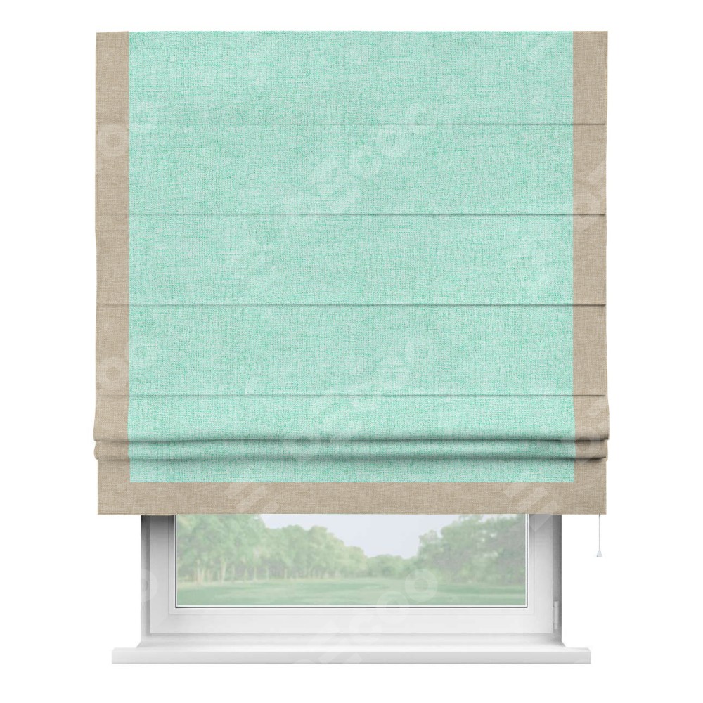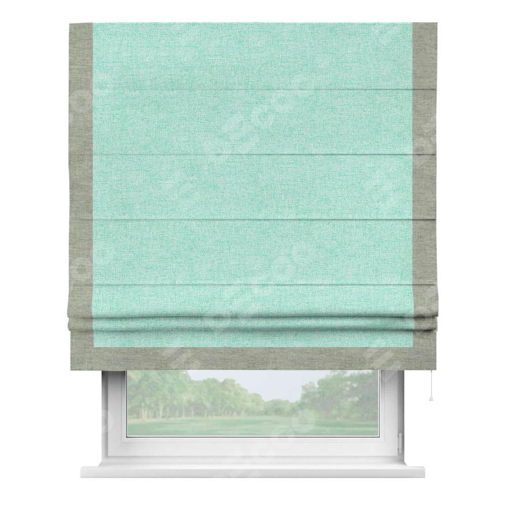 Римская штора «Кортин» для проёма, лён кашемир мятный, с кантом Виктория