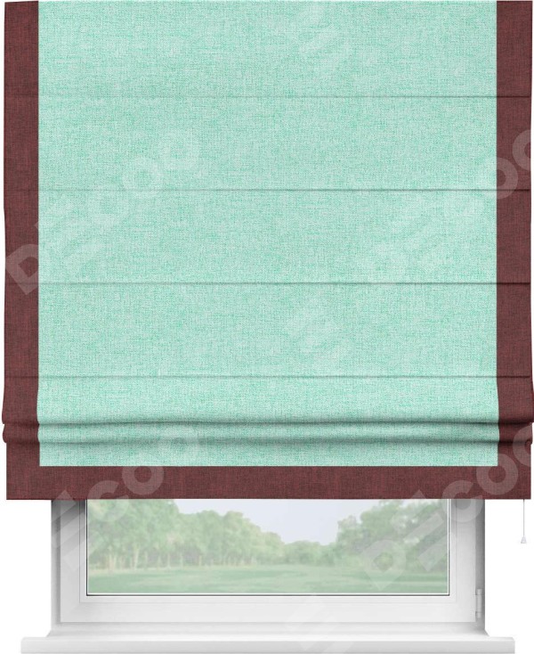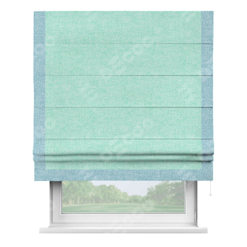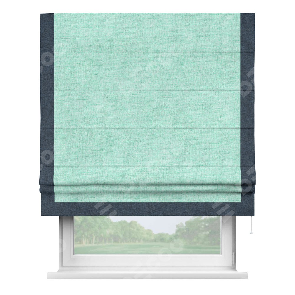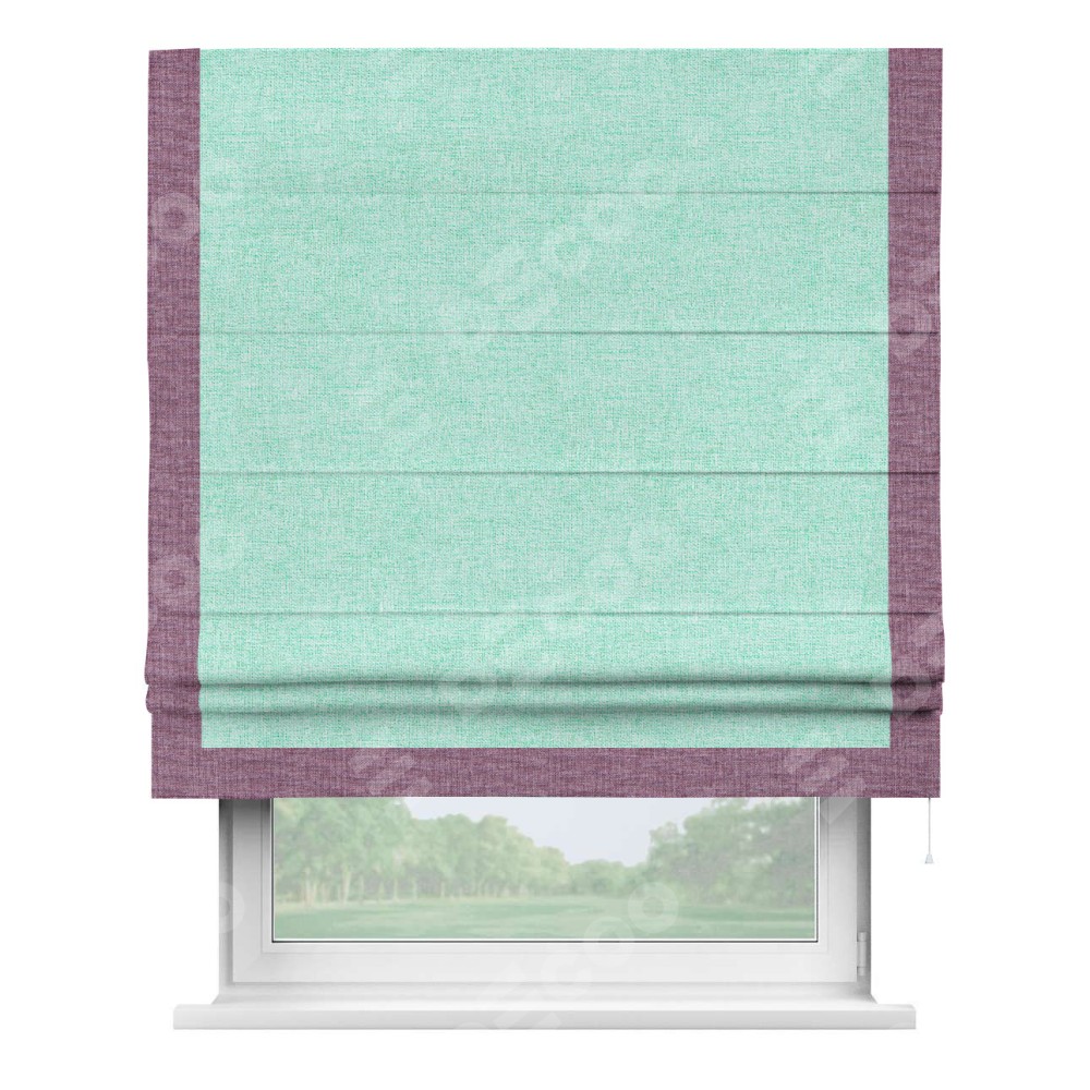 Римская штора «Кортин» для проёма, лён кашемир мятный, с кантом Виктория