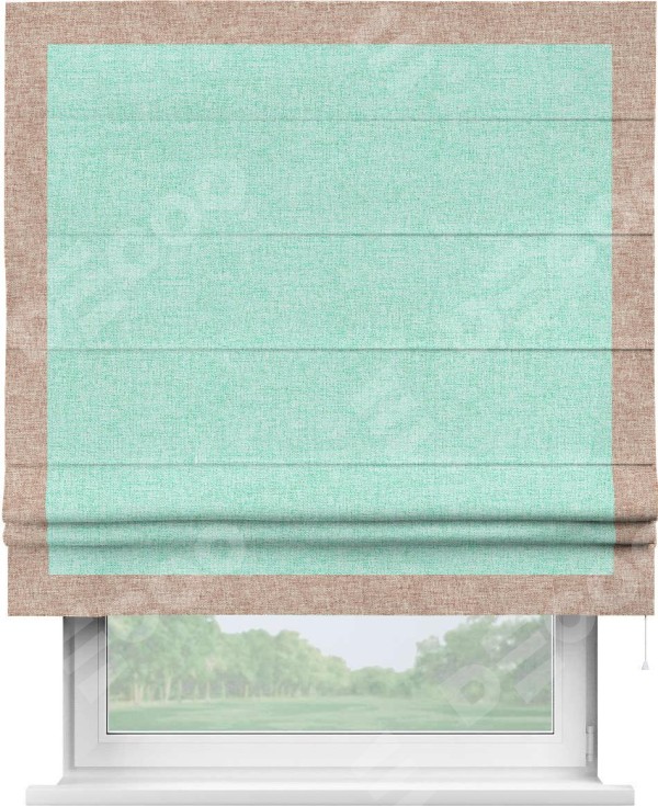 Римская штора «Кортин» для проёма, лён кашемир мятный, с кантом Чесс