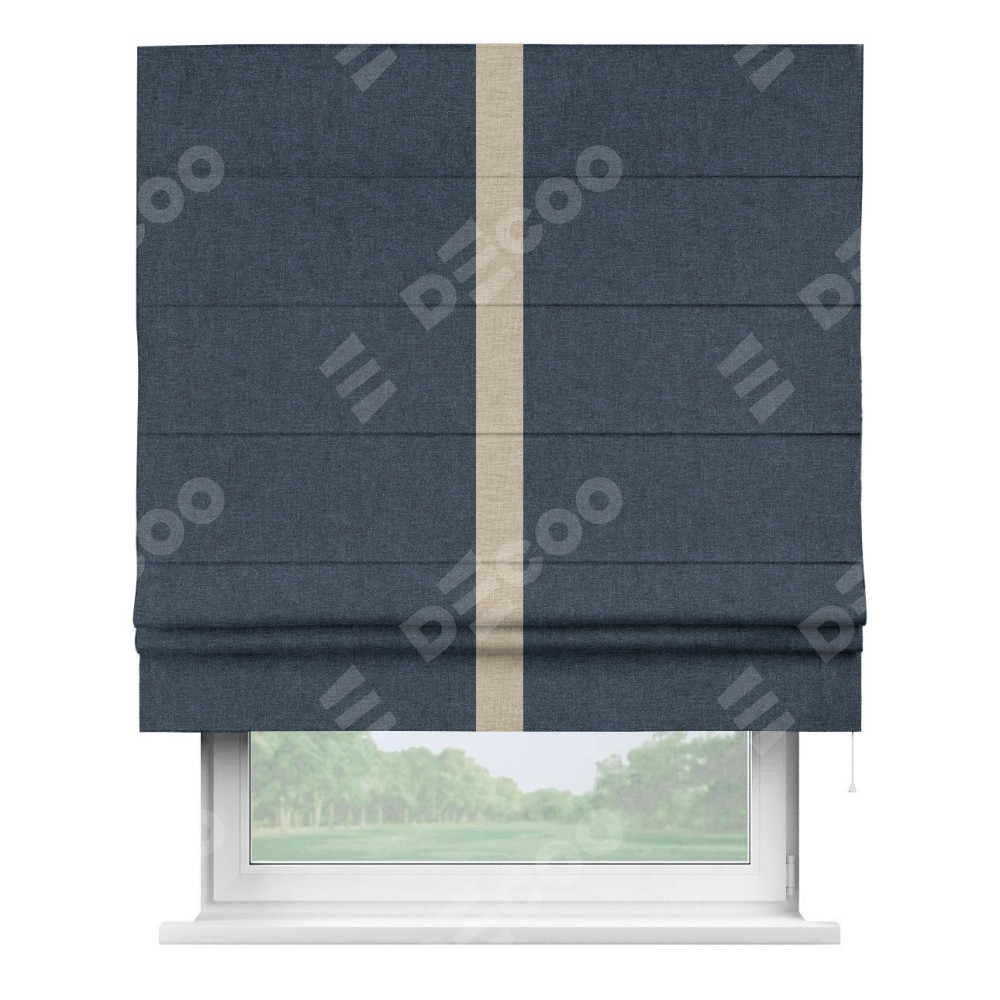 Римская штора «Кортин» для проёма, лён кашемир синий, с кантом Хайвэй