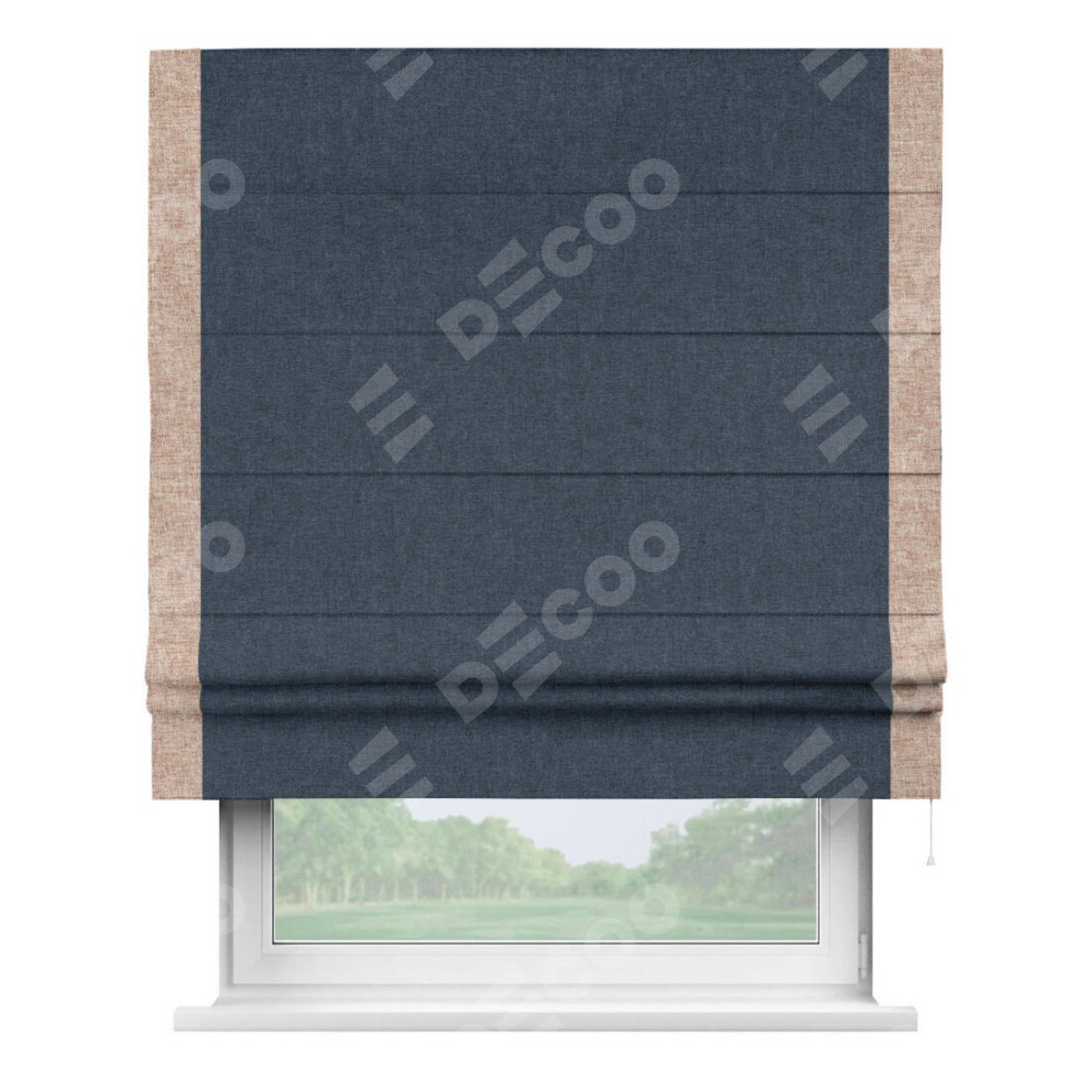 Римская штора «Кортин» для проёма, лён кашемир синий, с кантом Стрим Дуо