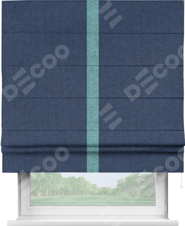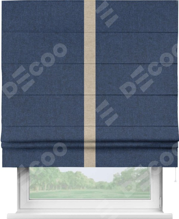 Римская штора «Кортин» для проёма, лён кашемир тёмно-синий, с кантом Хайвэй